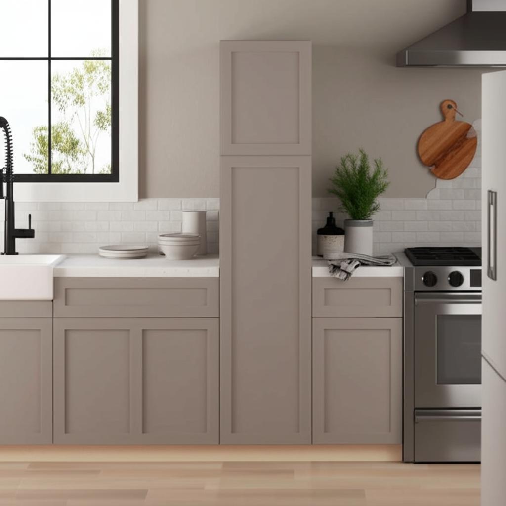 Discover the elegance and functionality of the Hampton Bay Shaker Pantry Cabinet in Sterling Gray—your perfect partner for a beautifully organized kitchen.