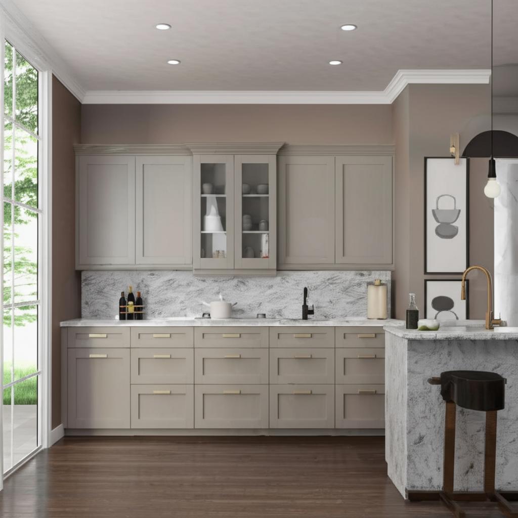 Transform your kitchen into a sophisticated space with the Hampton Bay Courtland Shaker Wall Kitchen Cabinet. Its sterling gray finish exudes modern elegance, while the full-overlay doors create a seamless and refined look. Pair it with sleek hardware and ambient lighting to elevate your kitchen's style. This cabinet is not just functional but a statement piece for luxurious living.