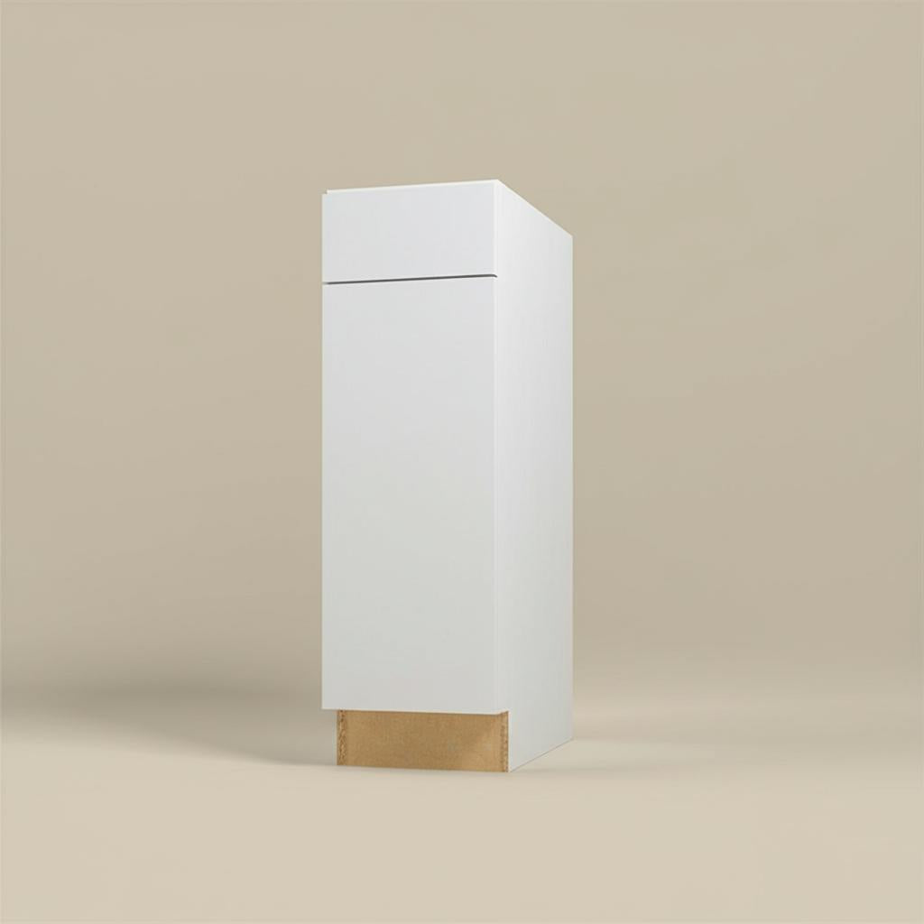 • Modern Design: Sleek, slab door style with bright white thermofoil finish.