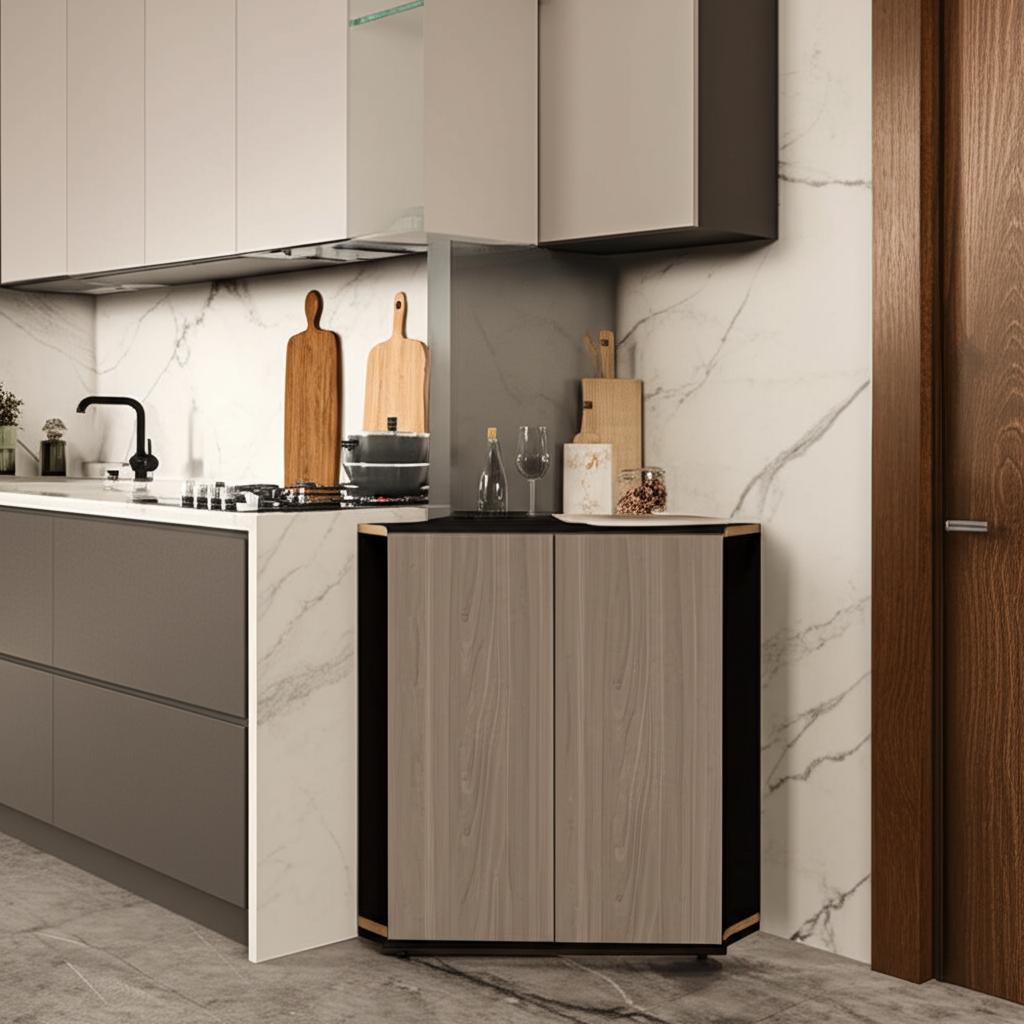 Elevate your kitchen with the Edgeley Driftwood Corner Sink Base Cabinet, a masterpiece of modern design and functionality. Its frameless construction and exotic wood-grain finish create a seamless and sophisticated look, perfect for contemporary spaces. Pair it with sleek hardware and minimalist decor to highlight its clean lines and elegant style. This cabinet is not just a storage solution but a statement piece that redefines luxury in kitchen design.