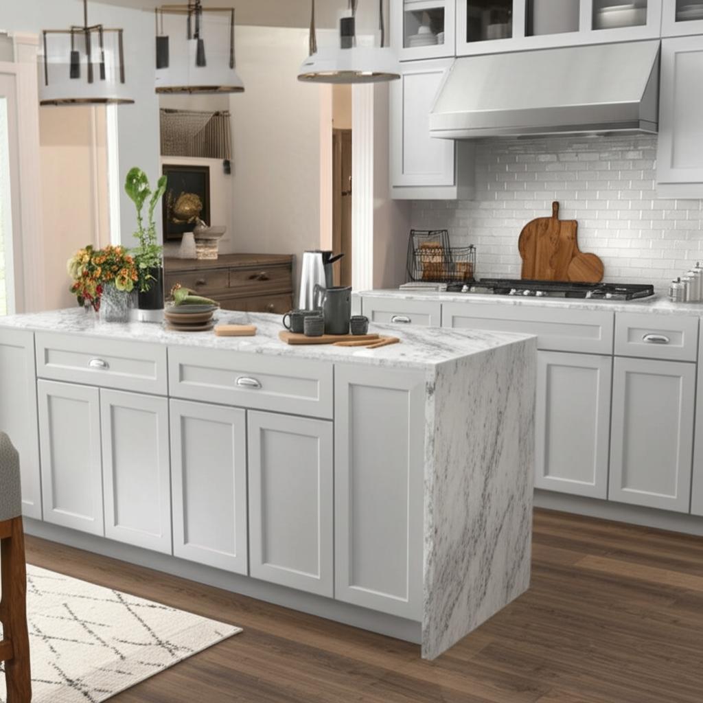 - Water-Resistant Finish: Heron Gray thermofoil finish for durability and moisture resistance.