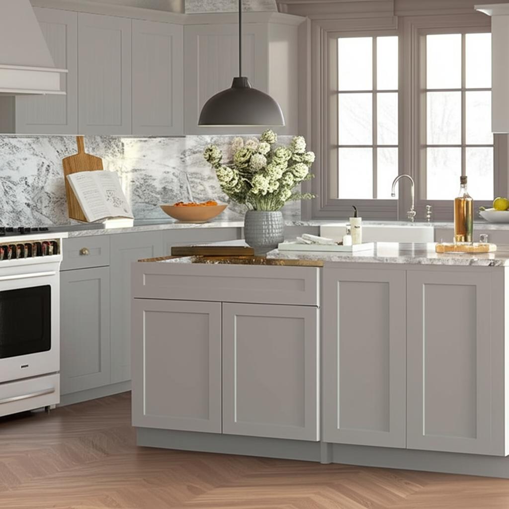 The Hampton Bay Designer Series Melvern Sink Base Cabinet in Heron Gray combines modern elegance with practical functionality. Featuring a durable thermofoil finish and frameless construction, it accommodates standard 33-inch kitchen sinks and offers seamless integration into any kitchen design.