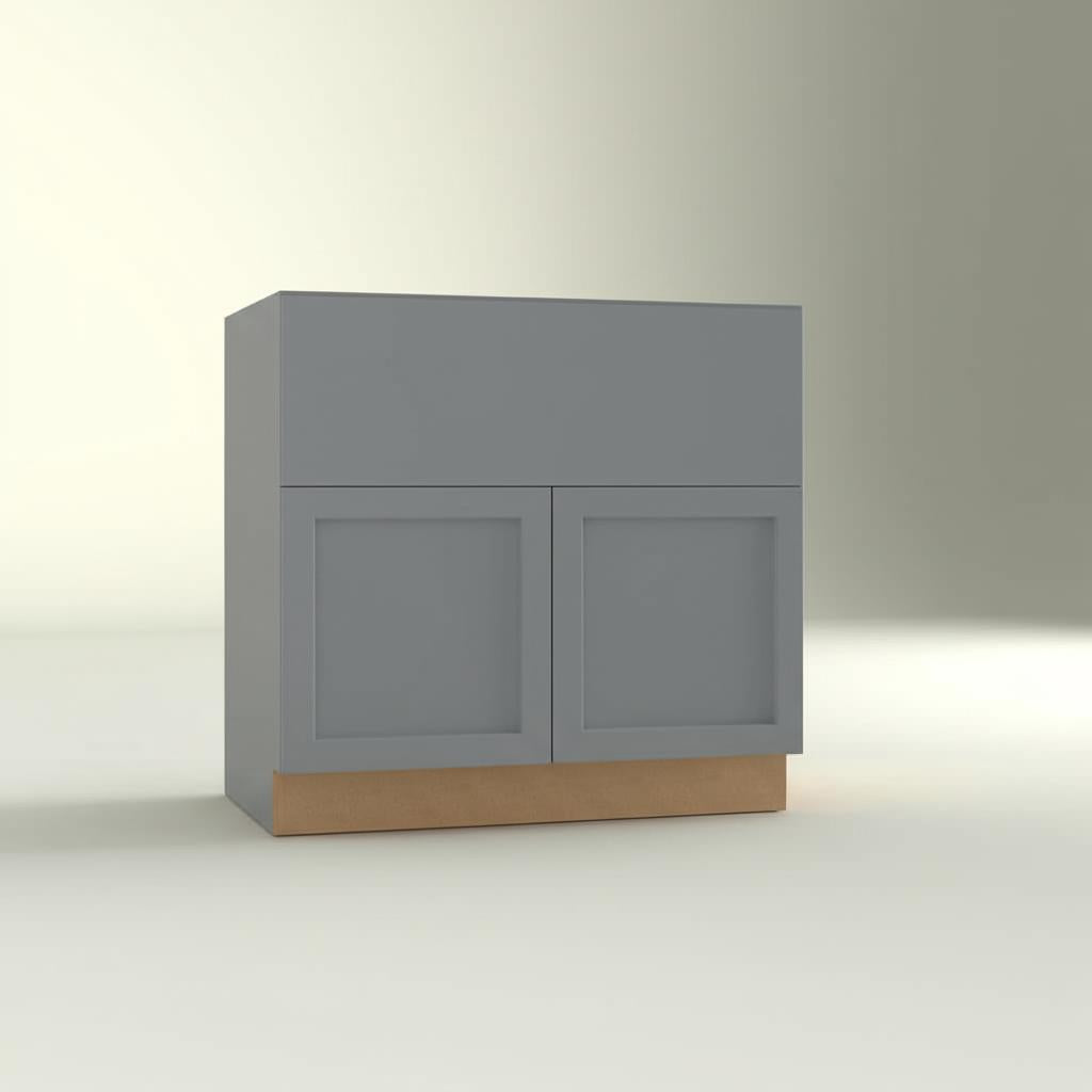 Elevate your kitchen's design and functionality by adding this Storm Gray Shaker Farmhouse Sink Base Cabinet to your cart today!