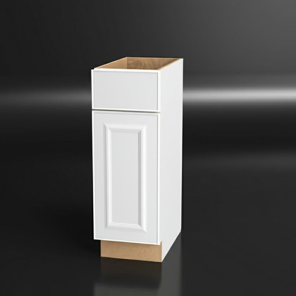 The Hampton Bay 12 in. Base Kitchen Cabinet in Satin White combines style and functionality with its framed construction and traditional raised door panel. Featuring ball-bearing drawer glides and a durable Thermofoil finish, this cabinet promises smooth operation and enduring elegance in any kitchen design.