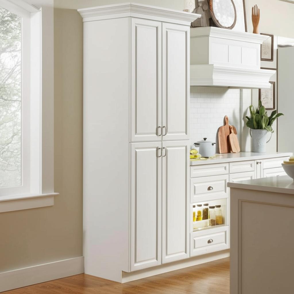 Revitalize your kitchen's storage and style today with the Hampton Bay Pantry Cabinet in Satin White.