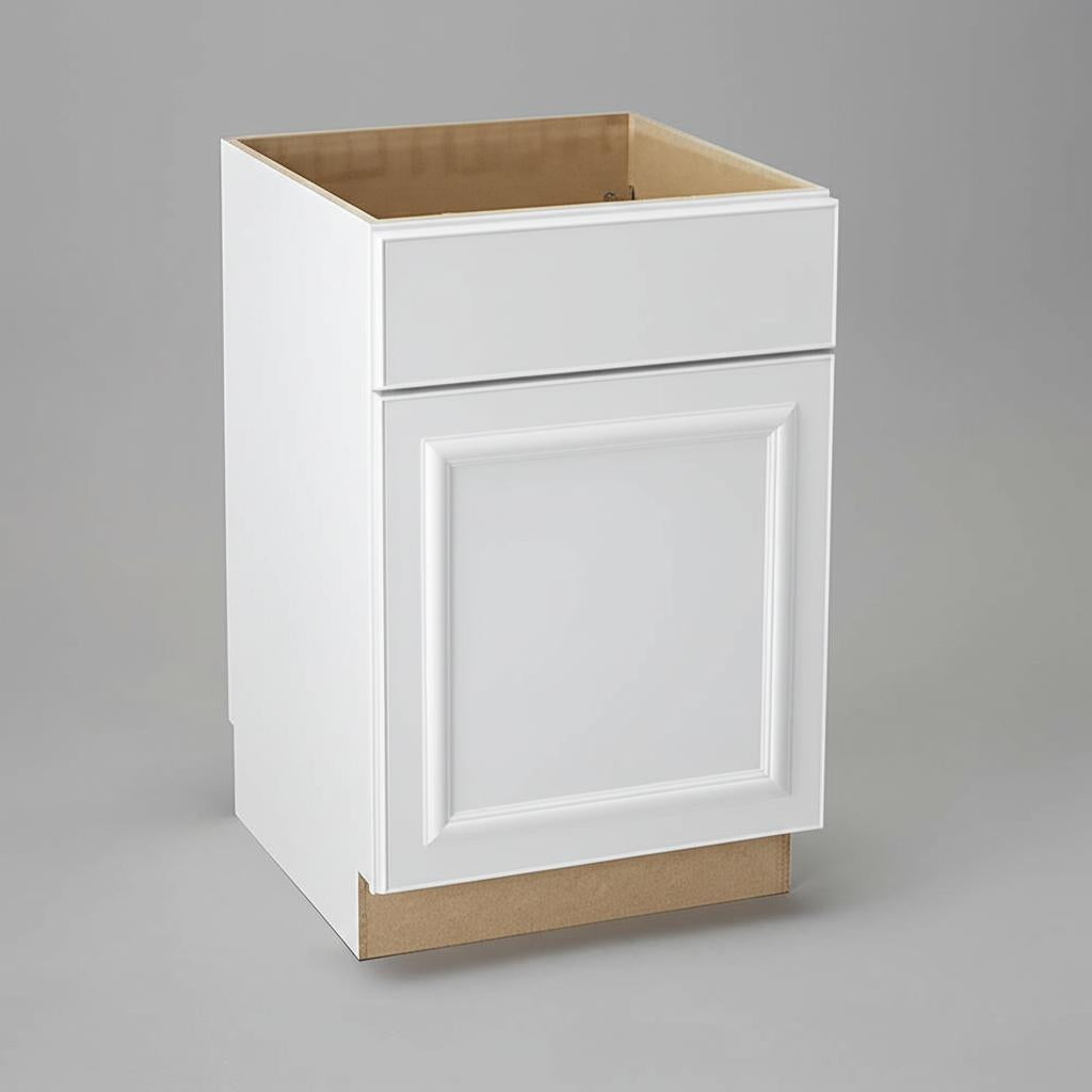 Elevate your kitchen space with the Hampton Bay 24" Base Kitchen Cabinet in Satin White. Its raised panel design exudes traditional sophistication, while the smooth drawer glides and adjustable shelves offer practical functionality. Pair it with brushed nickel hardware for a refined look that seamlessly blends classic charm with modern utility. This cabinet is a cornerstone of luxurious and efficient kitchen design.