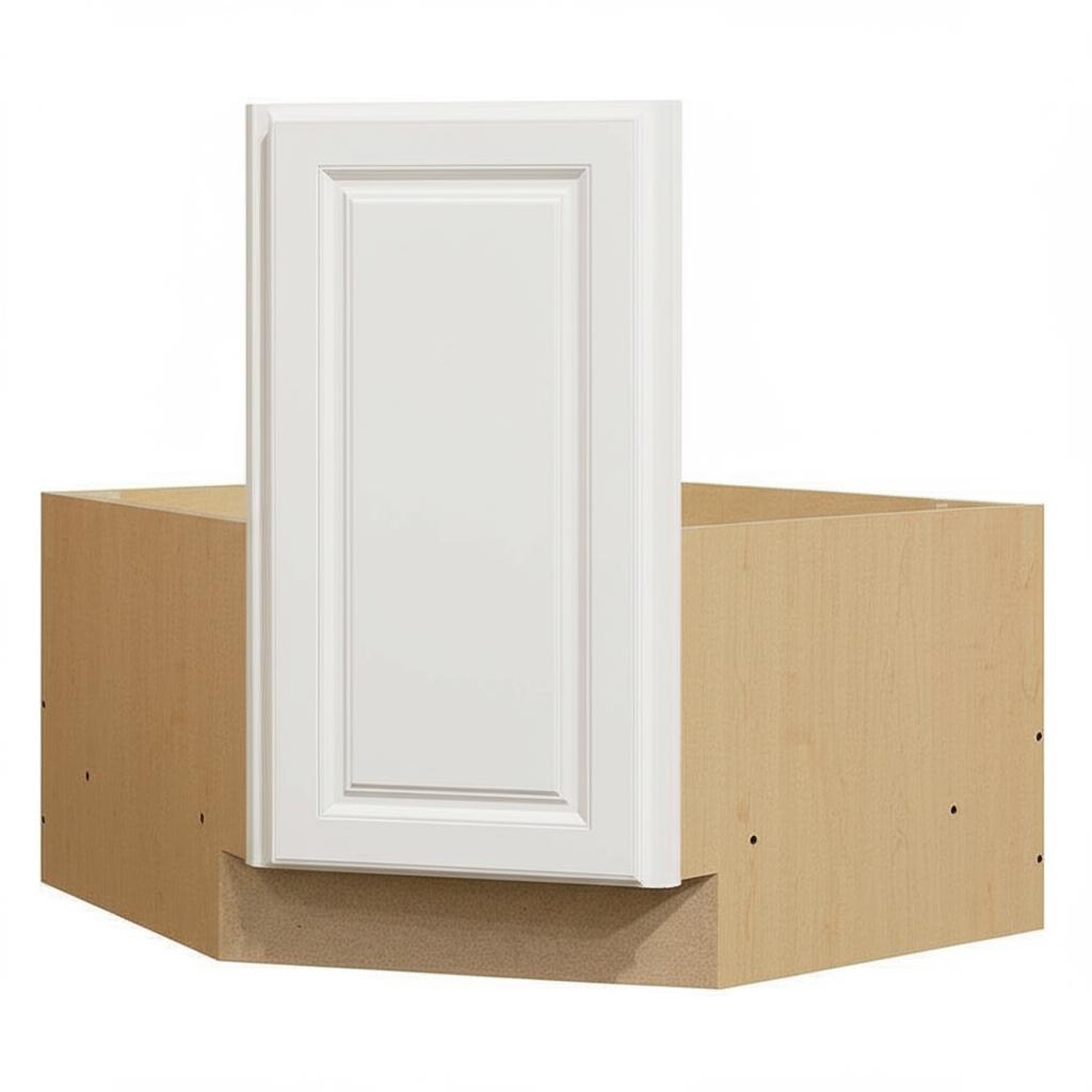 The Hampton Bay Satin White Corner Sink Base Cabinet combines traditional elegance with modern functionality. Featuring a durable composite construction and a satin white finish, it is designed to enhance your kitchen's aesthetic while providing practical storage solutions.