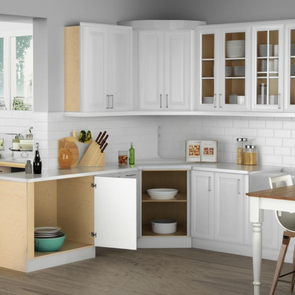 Upgrade your kitchen today with the Hampton Bay Satin White Corner Sink Base Cabinet and experience the perfect blend of style and functionality.