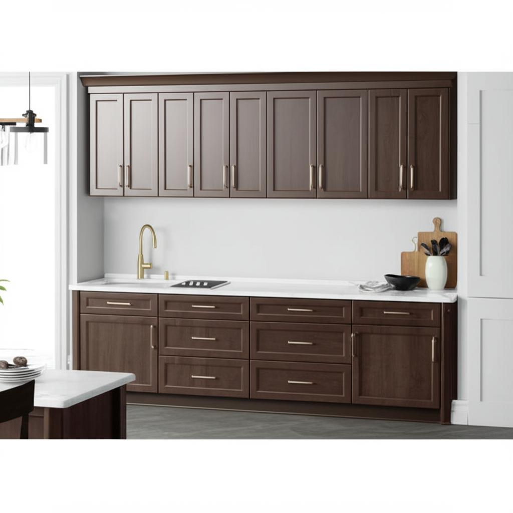 Transform your kitchen into a masterpiece of modern design with the Hampton Bay Brindle Shaker Wall Cabinet. Its rich Brindle hue evokes sophistication, effortlessly warming up any space. The iconic Shaker style blends seamlessly with both contemporary and classic décors. Consider pairing it with brushed brass fixtures for a touch of glamour or with rustic, reclaimed wood for a charming farmhouse look. Essential for those who desire not just a kitchen, but an oasis of elegance and luxury living.