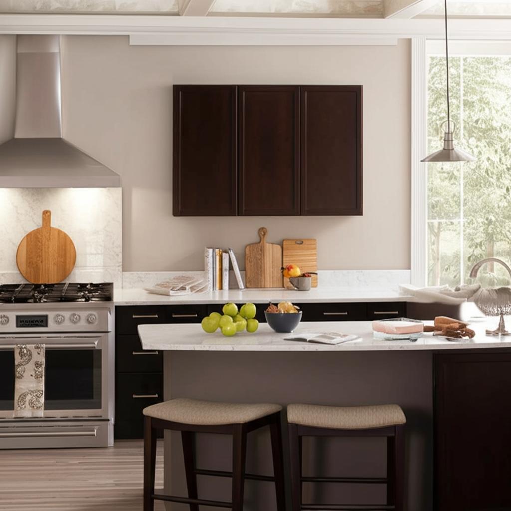 The Hampton Bay Shaker Wall Kitchen Cabinet in Java combines timeless shaker design with durable construction. Preassembled for easy installation, it features adjustable shelves and a rich stained finish, making it a versatile addition to any kitchen.