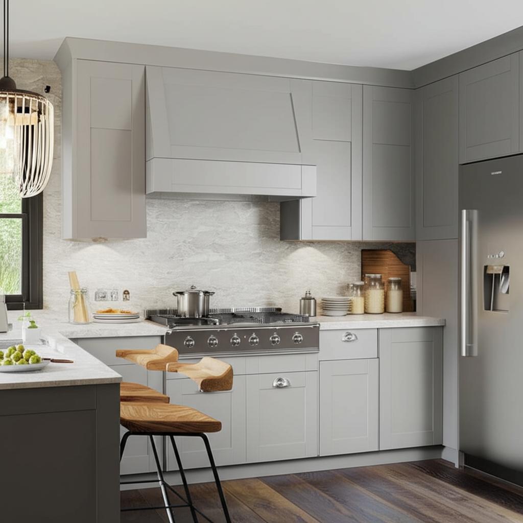 The Hampton Bay Shaker Wall Kitchen Cabinet in Dove Gray combines modern style with practical functionality. Featuring a durable composite construction and a sleek Shaker design, this cabinet offers adjustable shelves for versatile storage and a preassembled structure for easy installation.