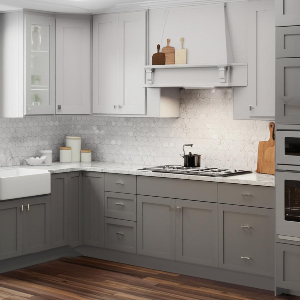 - Versatile Design: Shaker-style doors with dusk gray finish complement various kitchen styles.