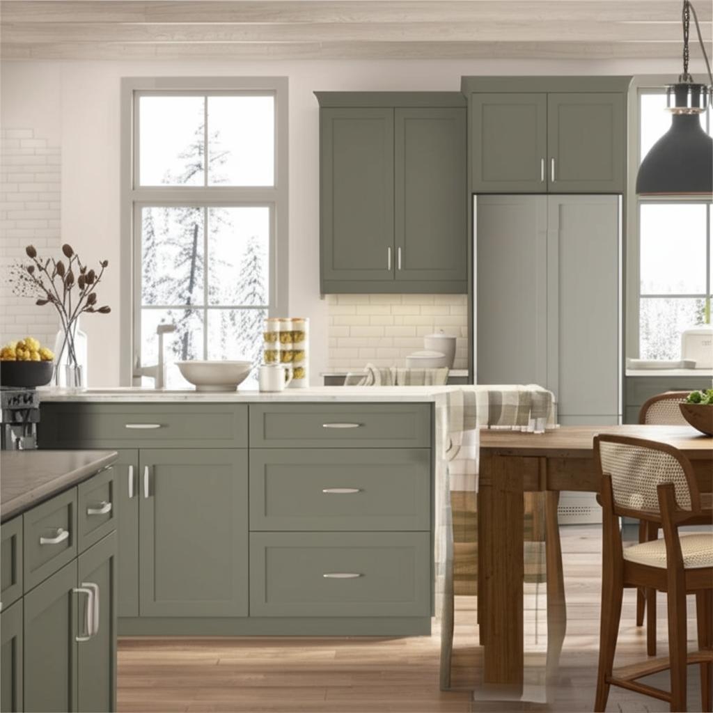 Transform your kitchen into a haven of sophistication with the Westfield Dusk Gray Shaker Cabinet. Its sleek, minimalist design and dusk gray finish create a modern yet timeless aesthetic. The absence of a center stile ensures seamless access, while pairing it with polished nickel hardware adds a touch of glamour. This cabinet is not just a storage solution but a statement piece that enhances the elegance of your space.