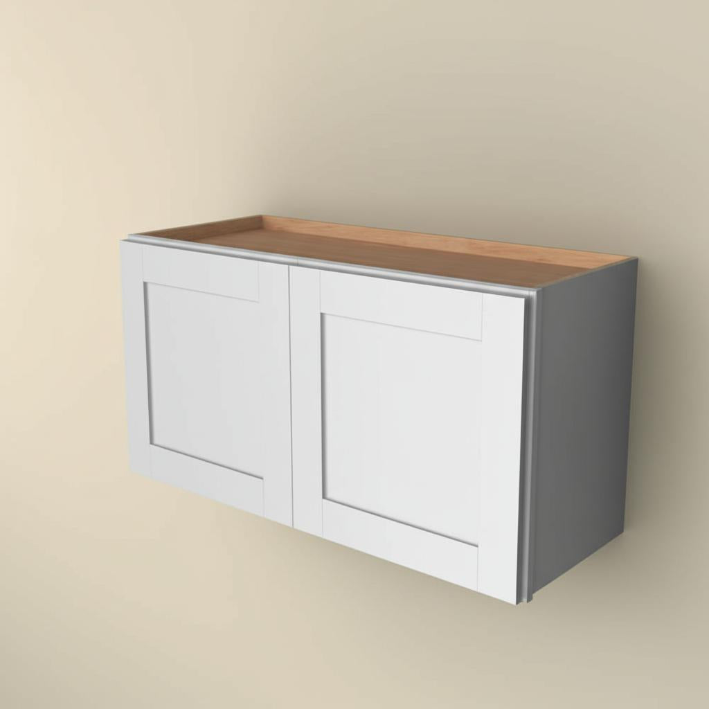 The Hampton Bay Westfield Feather White Shaker Wall Kitchen Bridge Cabinet offers a timeless design with shaker-style doors and a durable laminate finish. Perfect for maximizing storage above appliances, this pre-assembled cabinet is easy to install and provides full access to stored items.