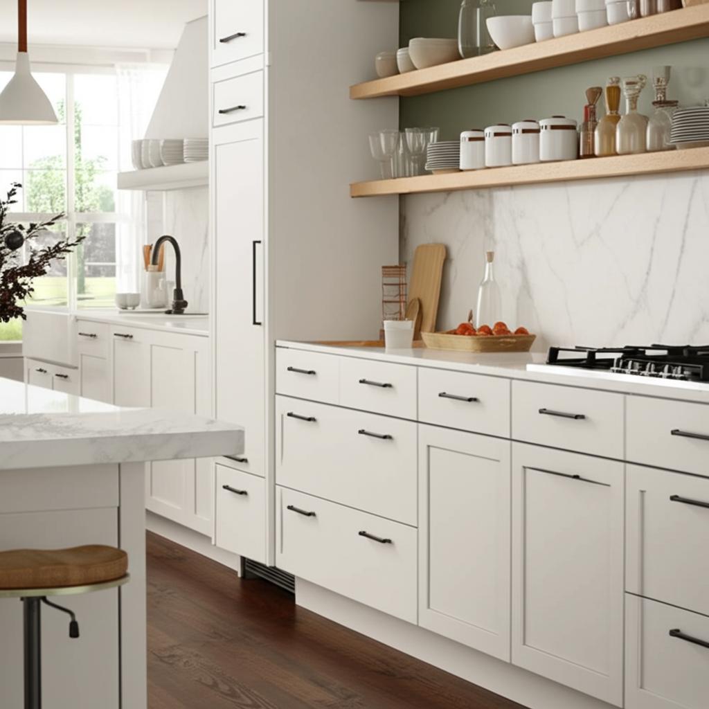 - Full-Overlay Style: Classic Shaker doors with 2.25-inch rails and stiles for a modern look.