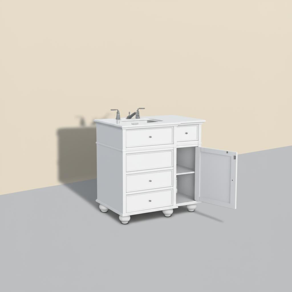 A: The vanity measures 35 in. H x 36 in. W x 22 in. D.