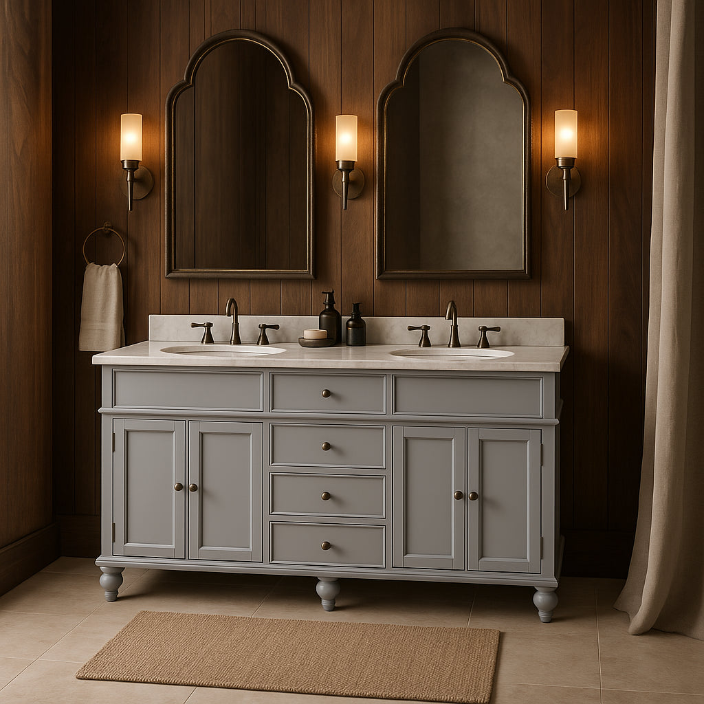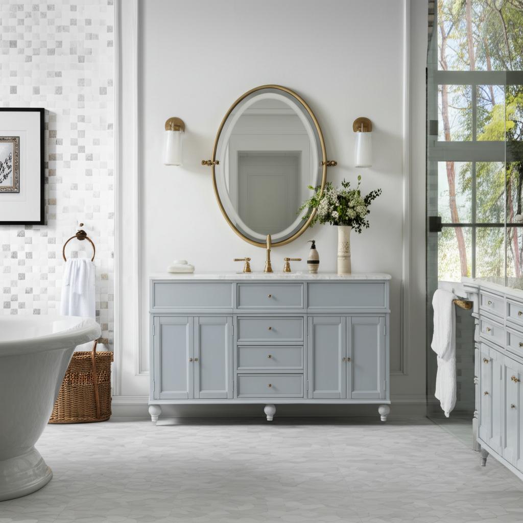 Upgrade your bathroom with the Hampton Harbor Double Sink Vanity and experience the perfect blend of style and functionality.
