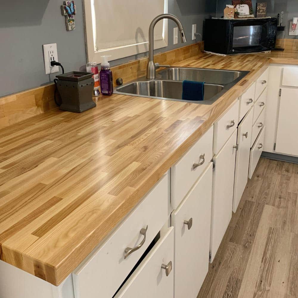 Transform your space with the HARDWOOD REFLECTIONS Unfinished Ash Butcher Block Countertop, and bring natural elegance into your home today.