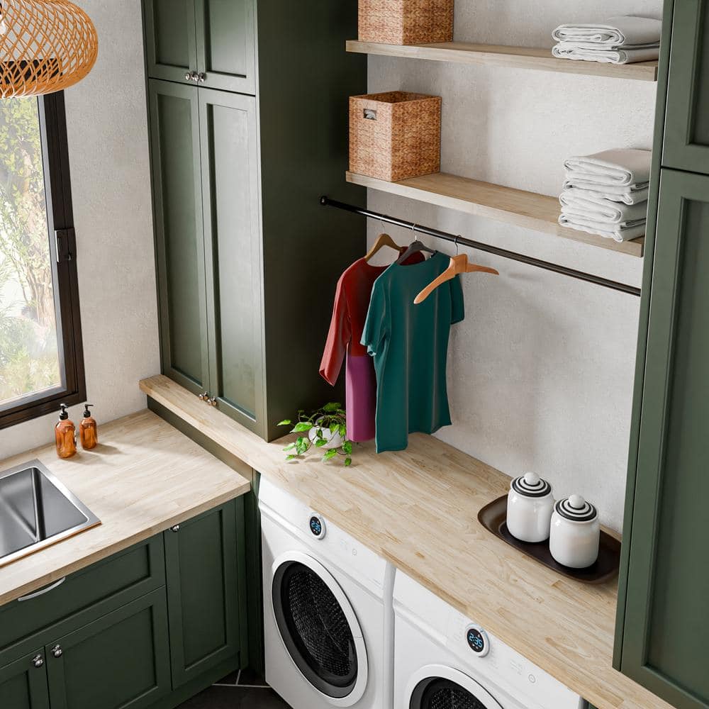 With its subtle grain and inviting warmth, this butcher block countertop transcends mere functionality by becoming an artful centerpiece in your kitchen. The unfinished Hevea wood offers a stunning canvas, encouraging creative expression and allowing you to craft a tailor-made masterpiece for your space. Envision it paired with sleek, modern cabinetry or as a rustic accent in more traditional settings. Essential to any luxurious kitchen sanctuary, its timeless appeal ensures that each meal is prepared and served with elegance.