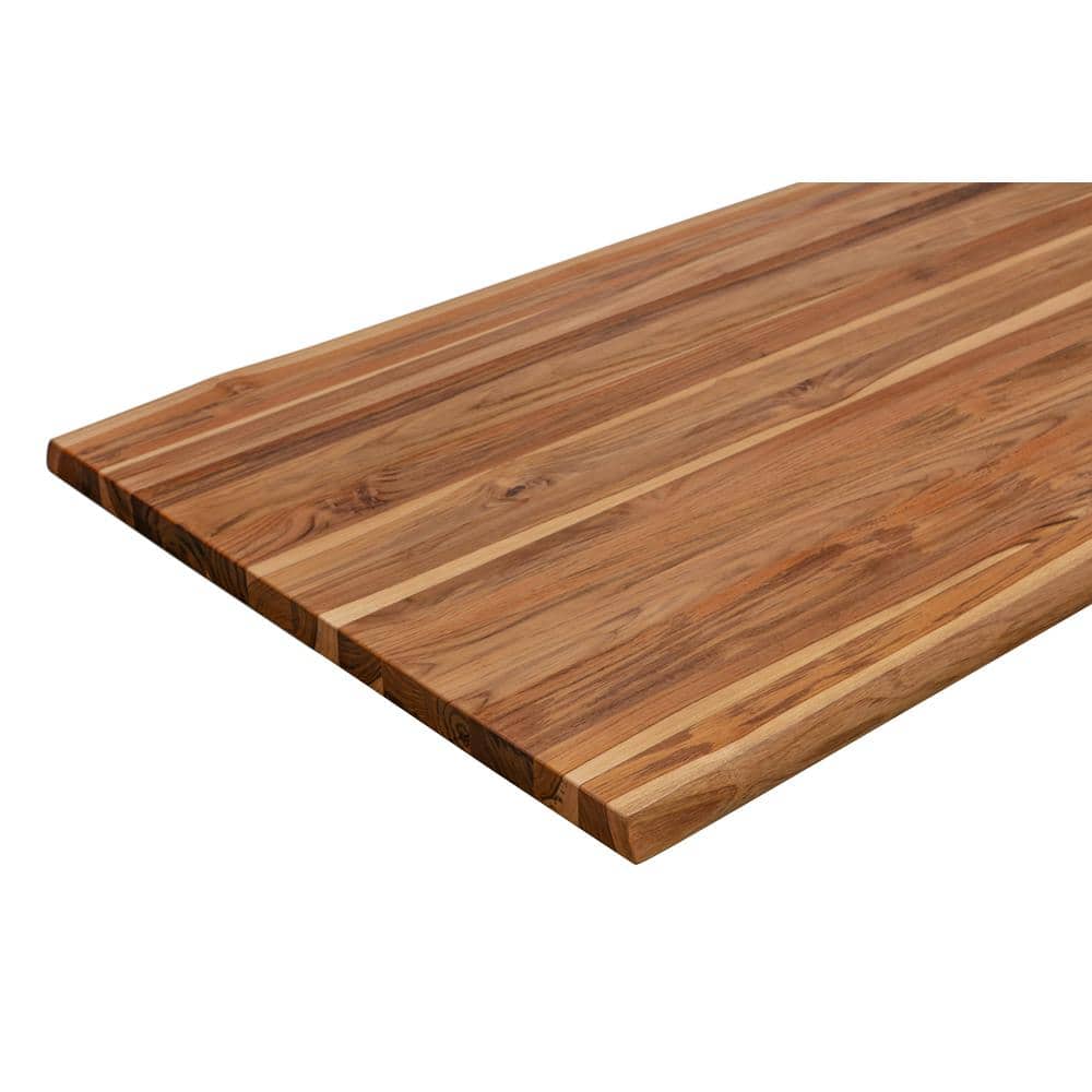 Elevate your kitchen or workspace with the HARDWOOD REFLECTIONS Teak Butcher Block Countertop. This 8 ft. solid wood piece blends stunning Nordic-inspired design with unmatched durability, featuring a live edge that adds a touch of organic elegance. Thanks to its factory UV finish, it offers a stain-resistant, maintenance-free surface ready for immediate installation.