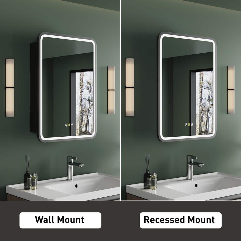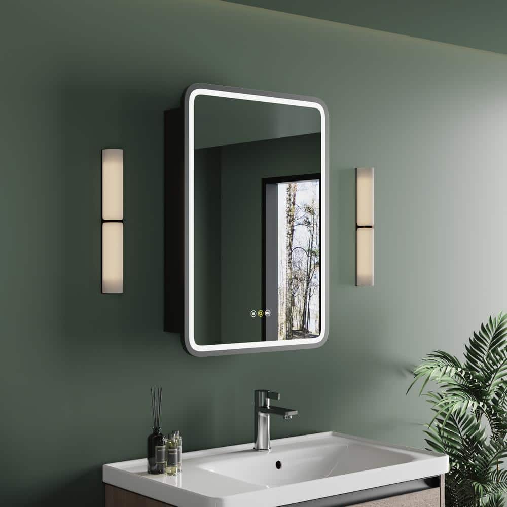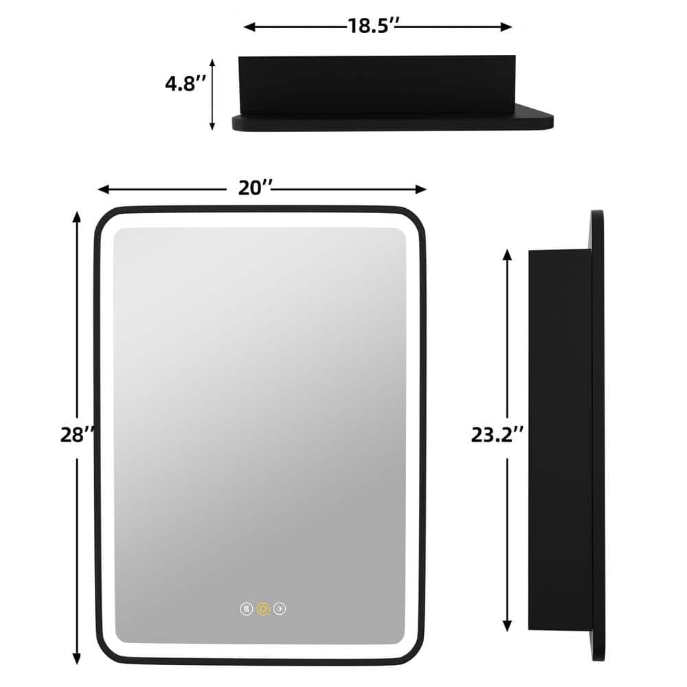 HBEZON Thalia 20 in. W x 28 in. H Rectangular Iron Black Recessed Medicine Cabinet with Mirror, LED Lighting, Anti-fog