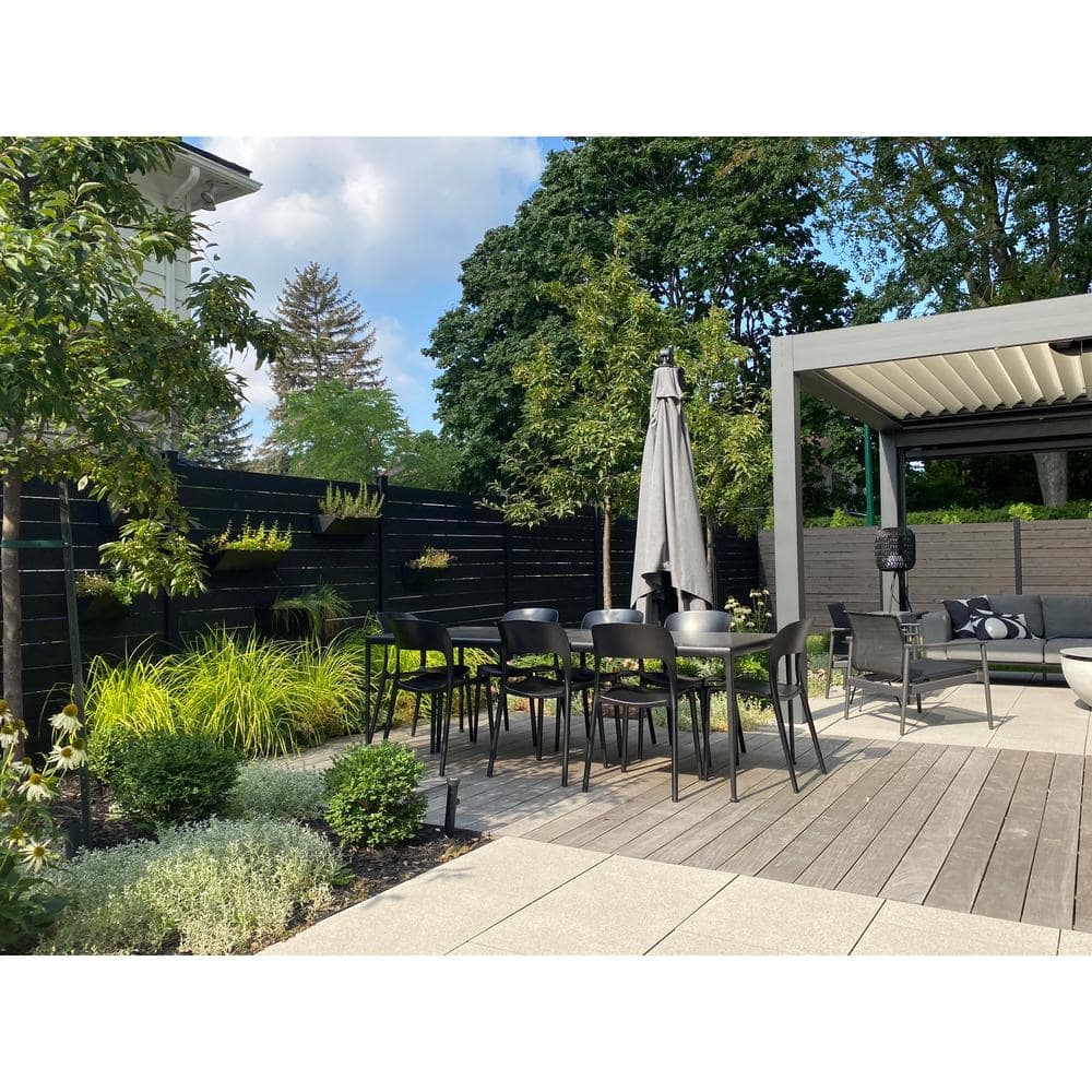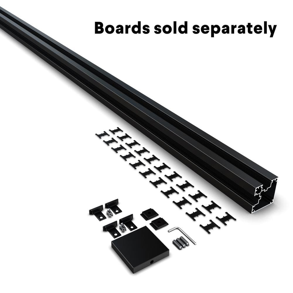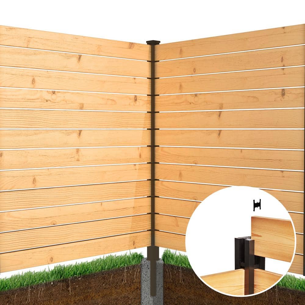 Enhance your outdoor living with the HOFT 96 in. Black Aluminum In-Ground Fence Corner Post and Hardware Kit. Its innovative easy-slide system allows for seamless board installation, transforming any backyard into a personalized oasis with privacy and style.
