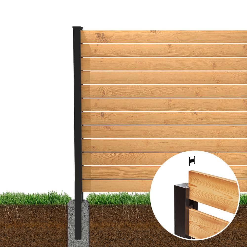 Embrace the art of outdoor privacy with HOFT's exquisite black aluminum fence end post kit. Its beautifully smooth finish and advanced easy-slide technology transform any garden into a serene space of elegance and grace. Imagine stylish boards, either warm wood or contemporary composite, neatly within this sleek framework, creating a stunning panorama. Perfect for those who desire an elegant retreat, this kit is a true testament to modern design and luxurious living.