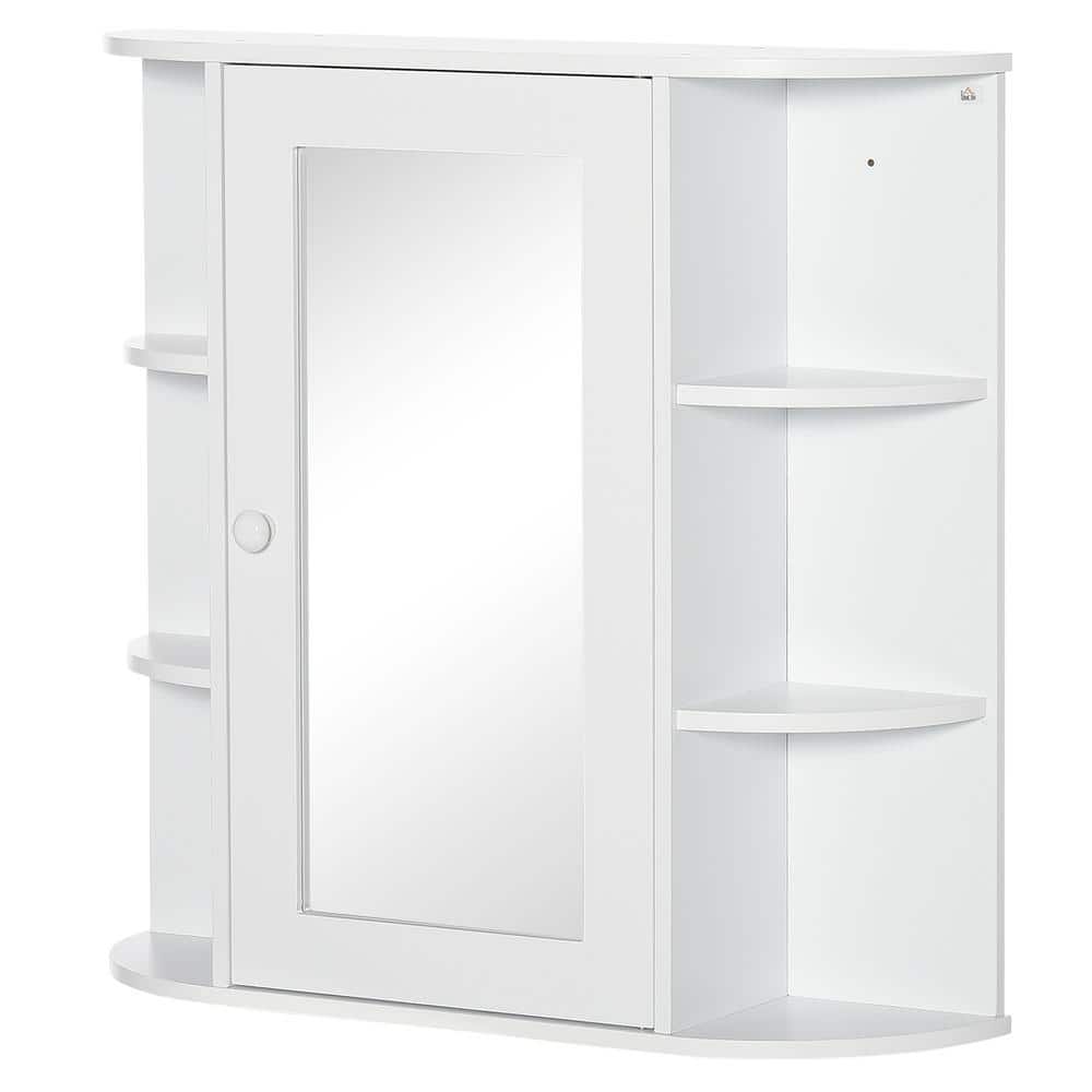 Maximize your bathroom storage with the HOMCOM 26 in. Rectangular Medicine Cabinet with Mirror. This sleek and functional cabinet features multiple shelves for ample storage and a central mirror, ideal for organizing toiletries and daily essentials. Crafted from durable MDF and finished in a pristine white, it complements any modern or traditional bathroom decor.