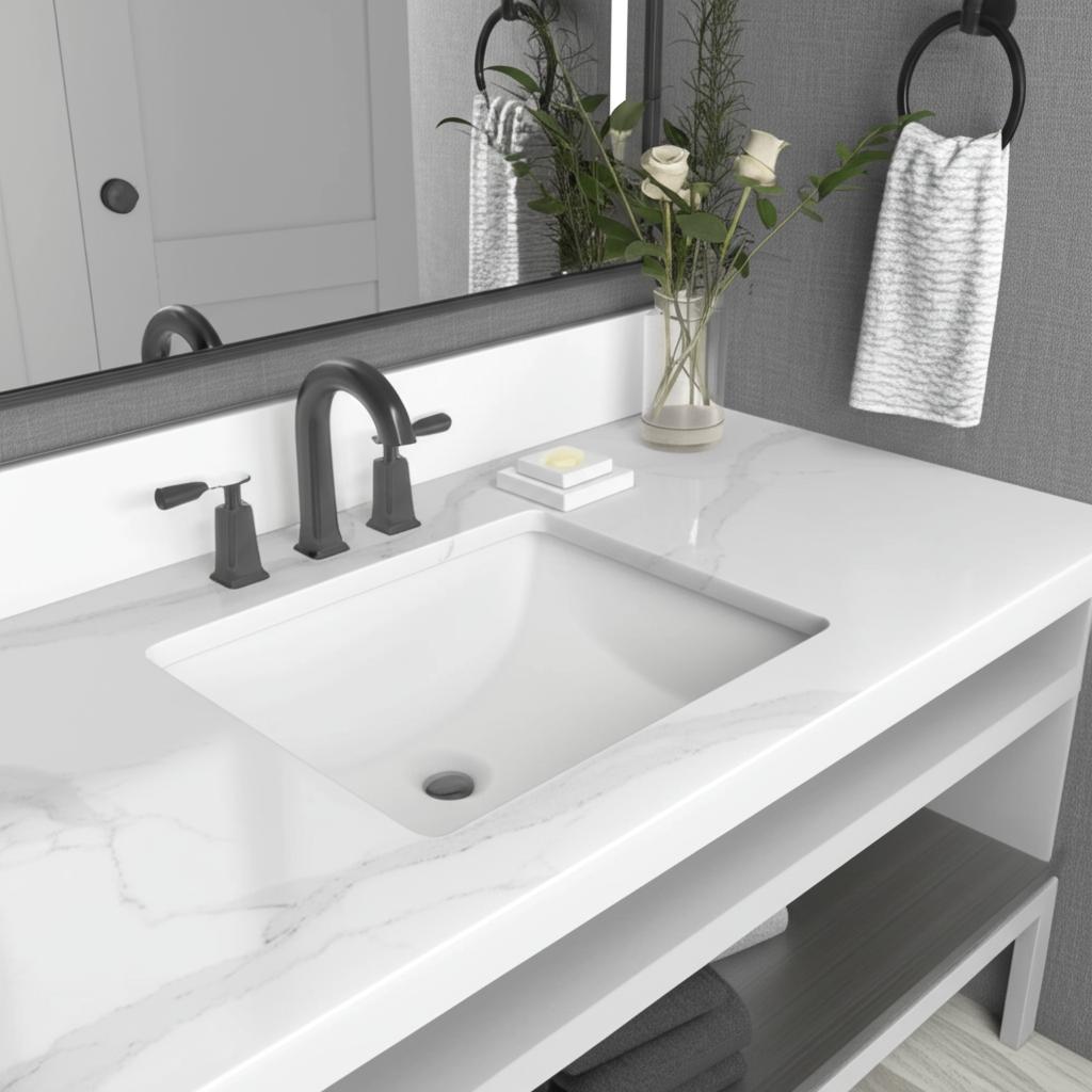 - Elegant Design: Features a Calacatta White finish with a rectangular vitreous china undermount sink.