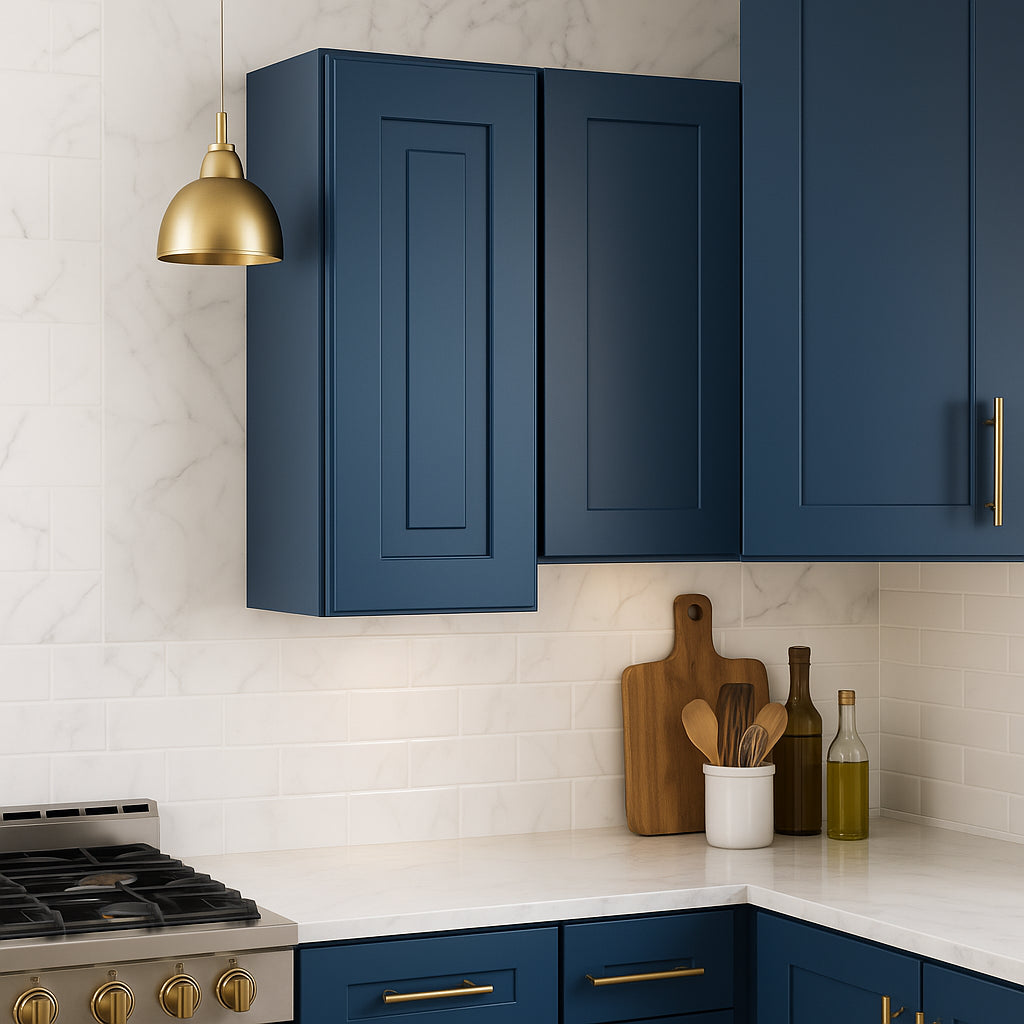 The Grayson Mythic Blue cabinet transforms your kitchen into a sophisticated haven. Its deep blue finish exudes a sense of calm and modern elegance, while the soft-close doors and adjustable shelves offer both luxury and practicality. Pair it with brushed gold hardware and warm wood accents to create a harmonious and inviting space. This cabinet is the perfect blend of style and functionality, making it an essential piece for any refined kitchen design.