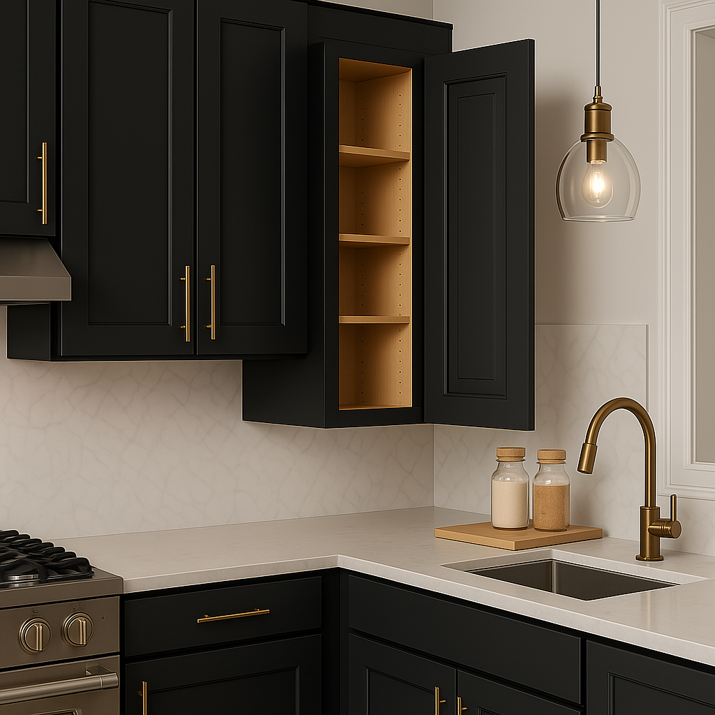 The Grayson Deep Onyx Wall Cabinet by Home Decorators Collection combines sleek design with premium functionality. Featuring a durable painted finish, soft-close doors, and adjustable shelves, this cabinet is perfect for modern kitchens.