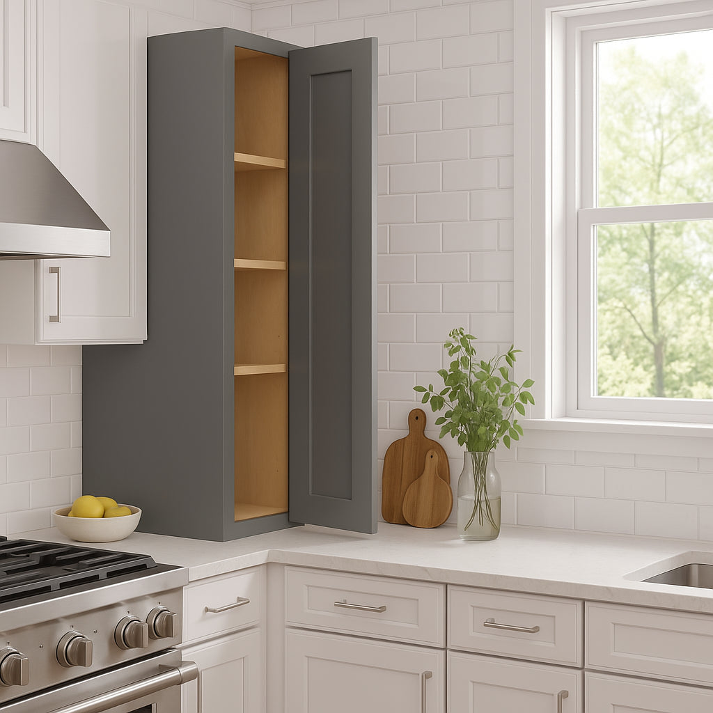 - Transitional Style: Features a sophisticated shaker door design in pearl gray.