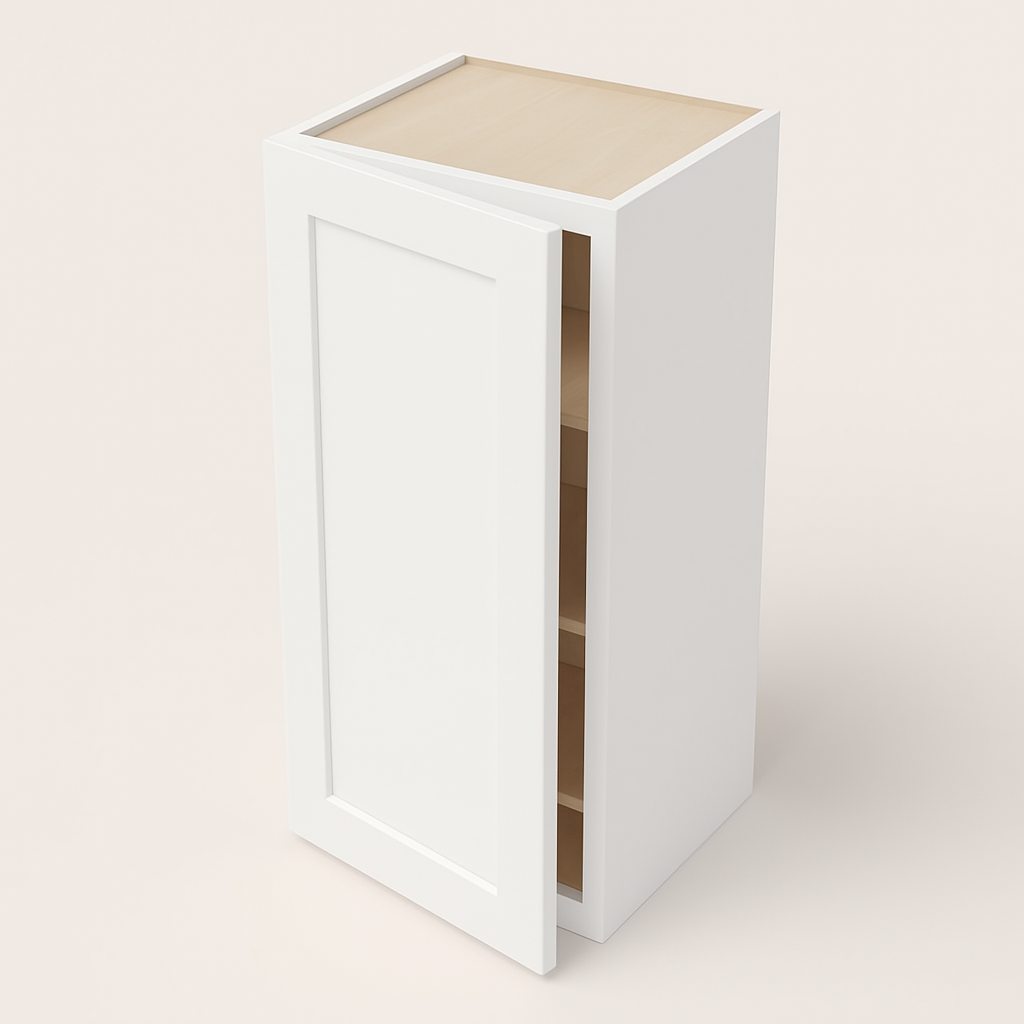 - Elegant Design: Features a sleek Shaker style with a raised center panel and Pacific White finish.