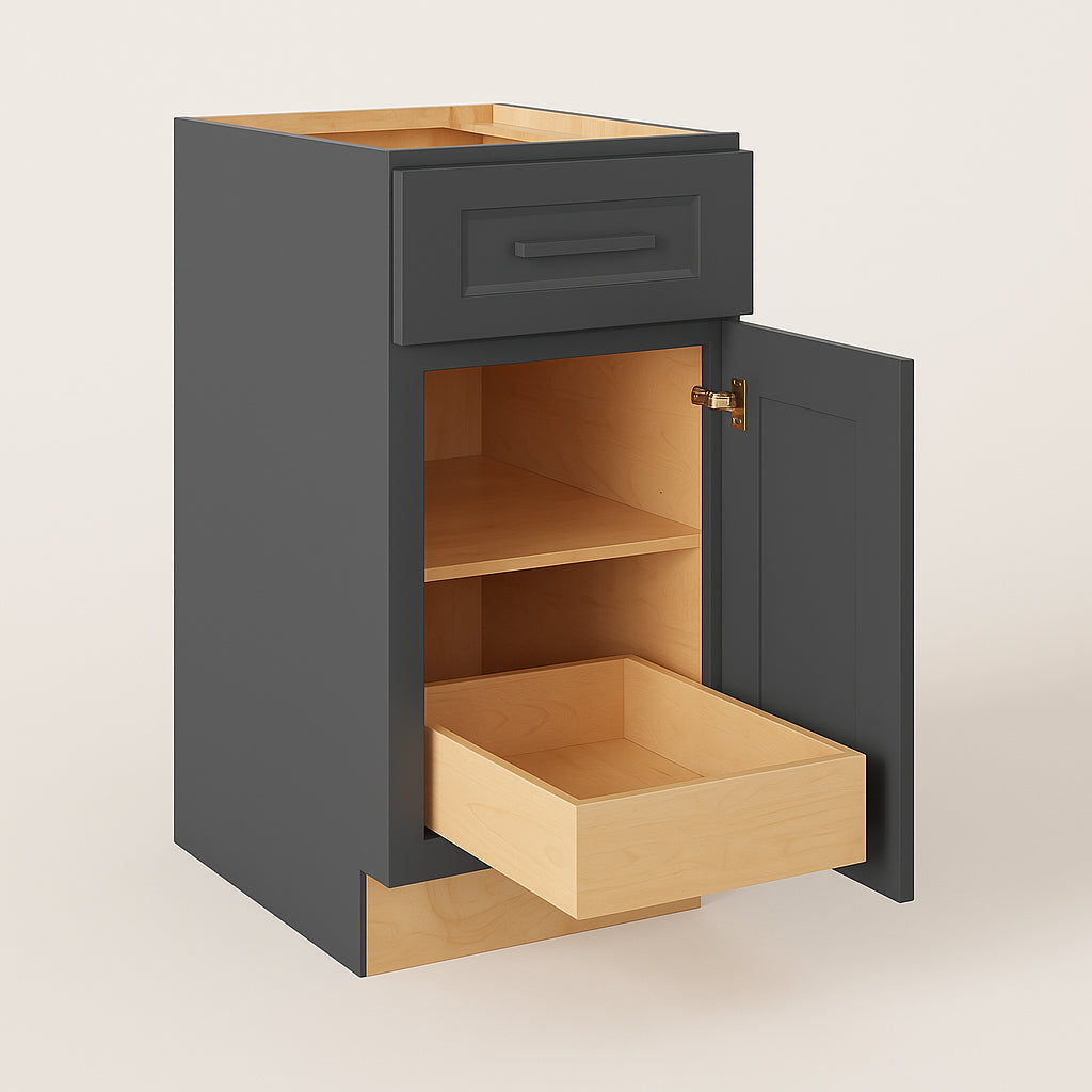 The Grayson Base Kitchen Cabinet in Deep Onyx combines modern aesthetics with practical functionality. Featuring a sleek shaker-style design, durable plywood construction, and soft-close features, it offers a high-end kitchen experience.