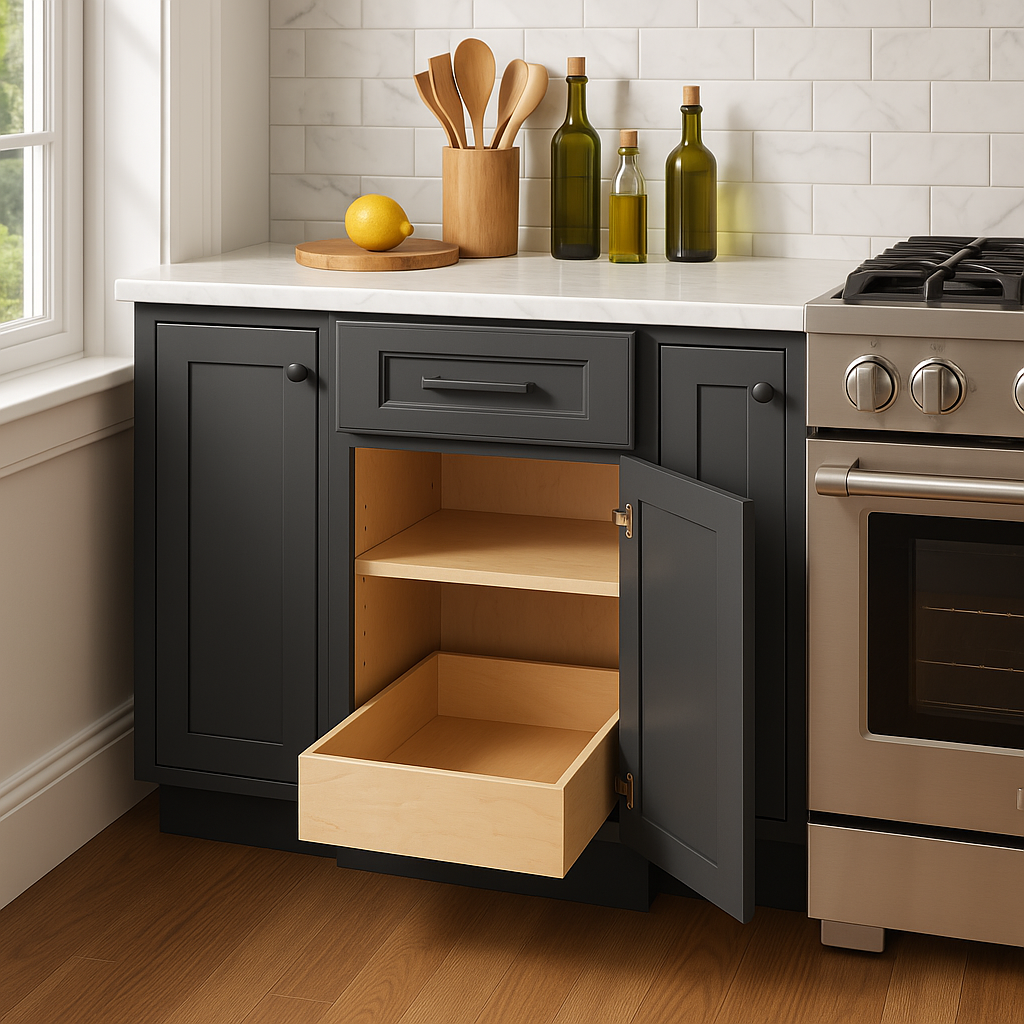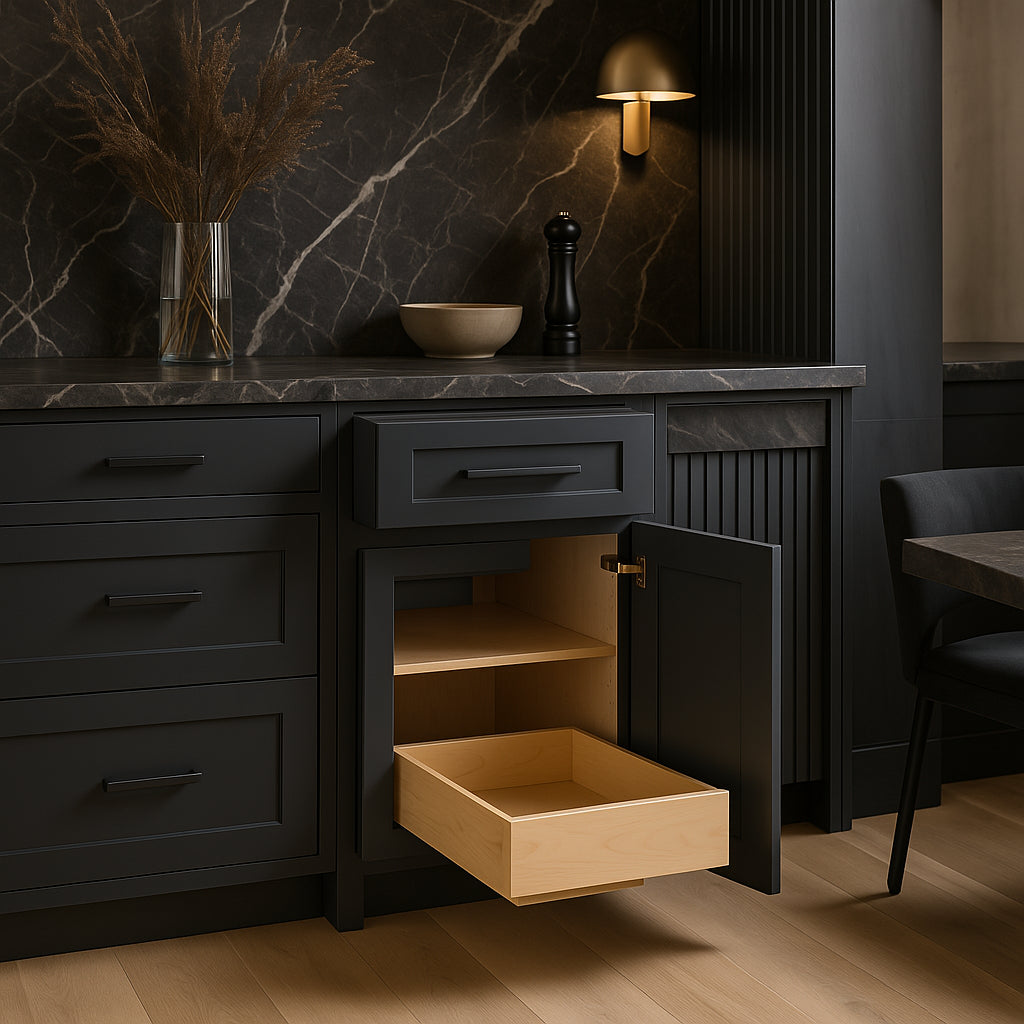 - Soft-Close Feature: Doors and roll-out trays with concealed slides for a smooth, quiet operation.