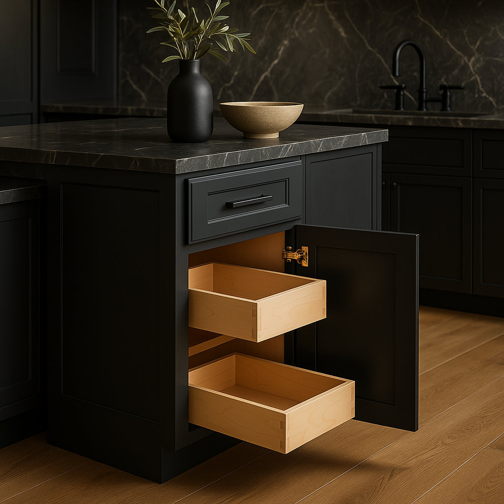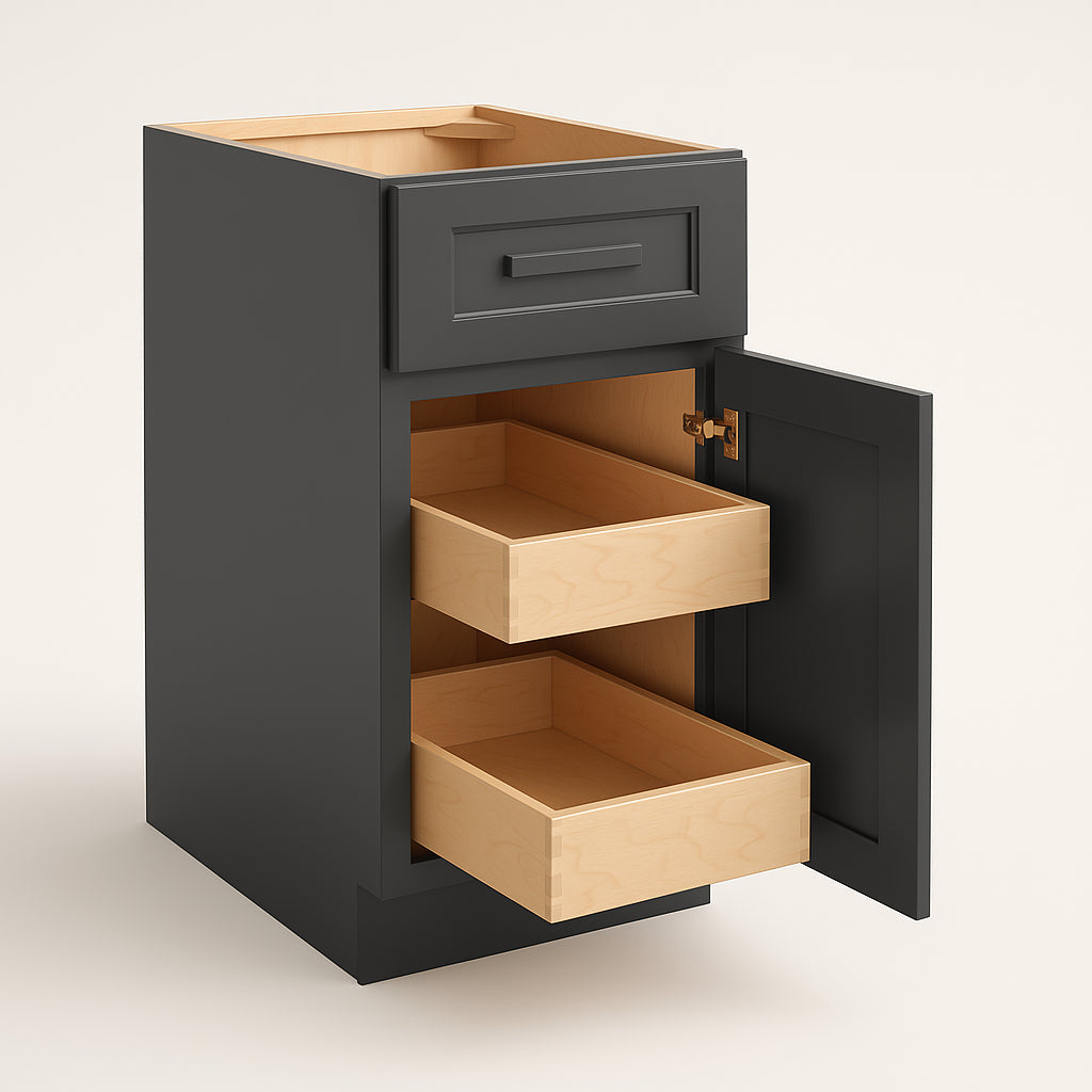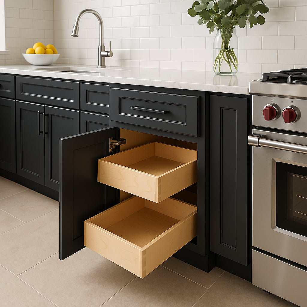 • High Capacity Storage: Includes two soft close roll-out trays and a utility tray insert for organized storage.