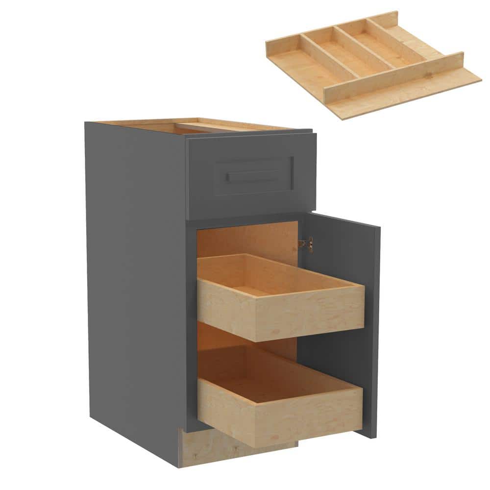 The Grayson Deep Onyx Base Kitchen Cabinet combines durable plywood construction with a sophisticated shaker style design. Featuring soft close functionality and ample storage, it’s the perfect blend of elegance and utility for your kitchen.
