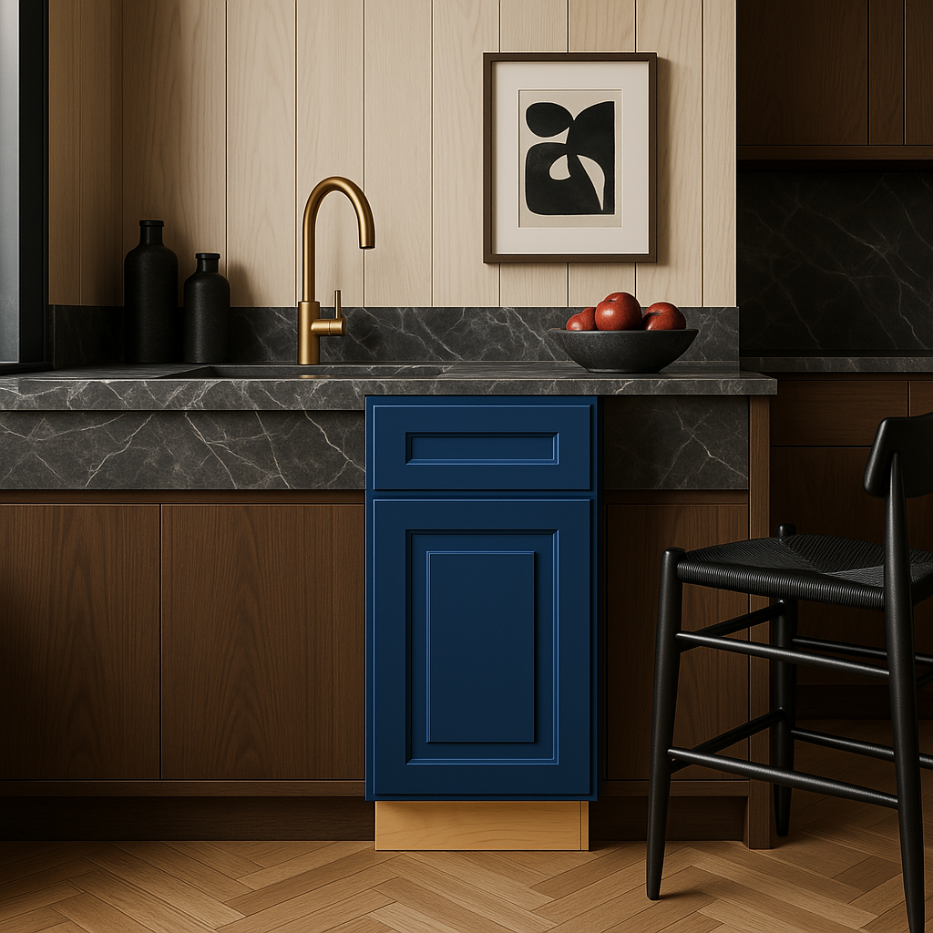 Transform your kitchen into a realm of sophistication with the Grayson Mythic Blue Base Kitchen Cabinet. Its stunning blue hue evokes a sense of serene elegance, blending seamlessly into both contemporary and classic interiors. The soft-close doors bring a touch of luxury to everyday usability, while the transitional Shaker style adds timeless charm. Pair with brass accents or marble countertops for a truly bespoke kitchen experience. Integrating this cabinet transforms not just your kitchen but elevates your entire home ambiance to a new level of refined living.