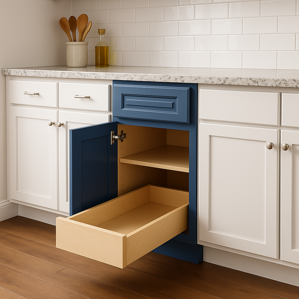 Kitchen Cabinet Features Adjustable Shelves, Finished Interior, Full Depth Shelves, Moisture Resistant, Soft Close Doors, Solid Wood, Structural Toe Kicks Included