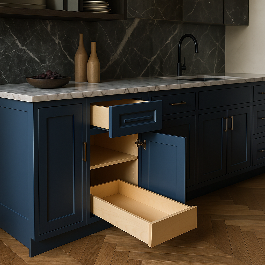 • Soft-Close Features: Doors and drawers gently close every time, enhancing convenience and longevity.