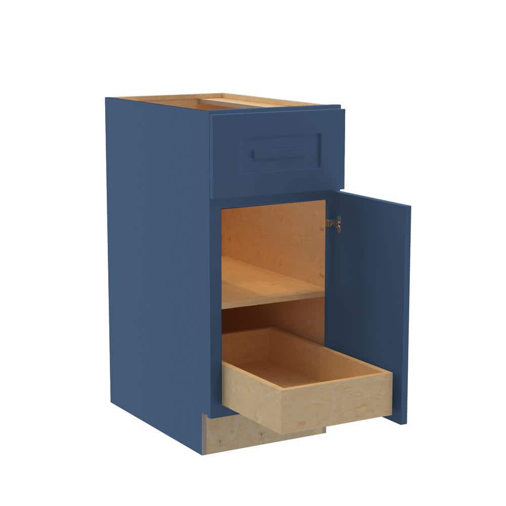The Grayson Mythic Blue Kitchen Cabinet by Home Decorators Collection combines style and functionality with its durable plywood construction, soft-close features, and elegant blue finish. Perfect for modern kitchens, it offers adjustable shelves and a solid hardwood drawer for versatile storage.