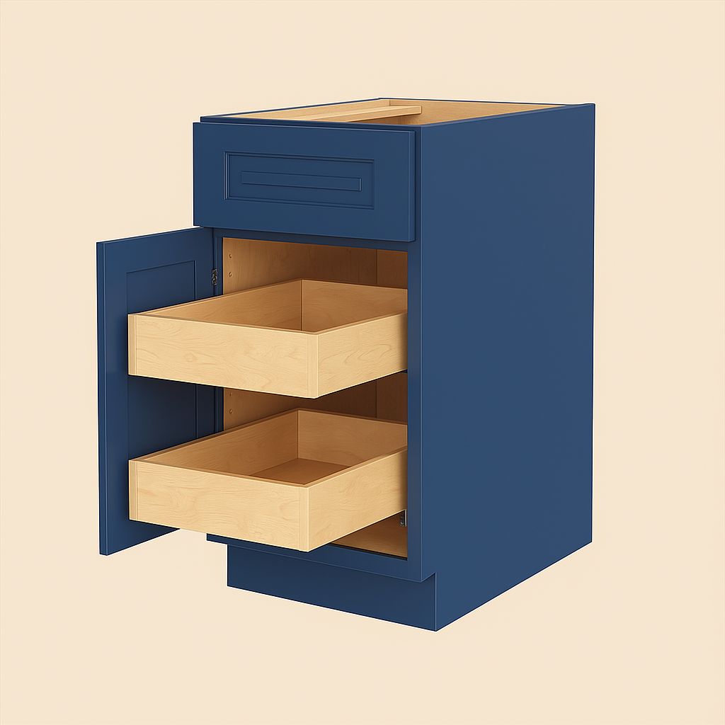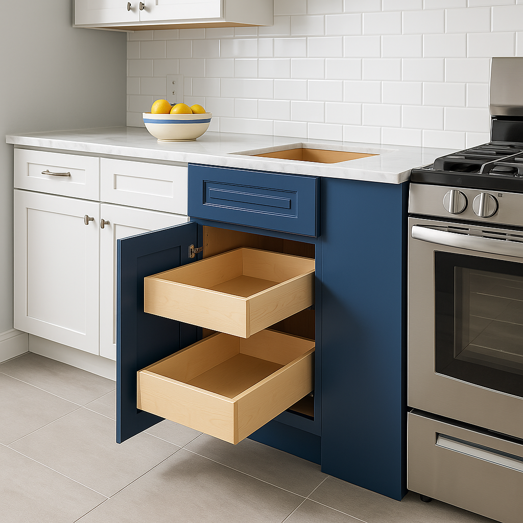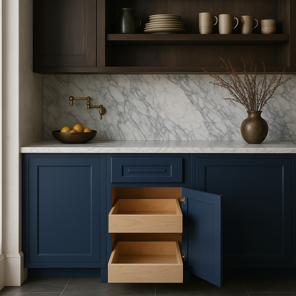 - Elegant Design: Features a transitional Shaker style with a chic Mythic Blue finish.