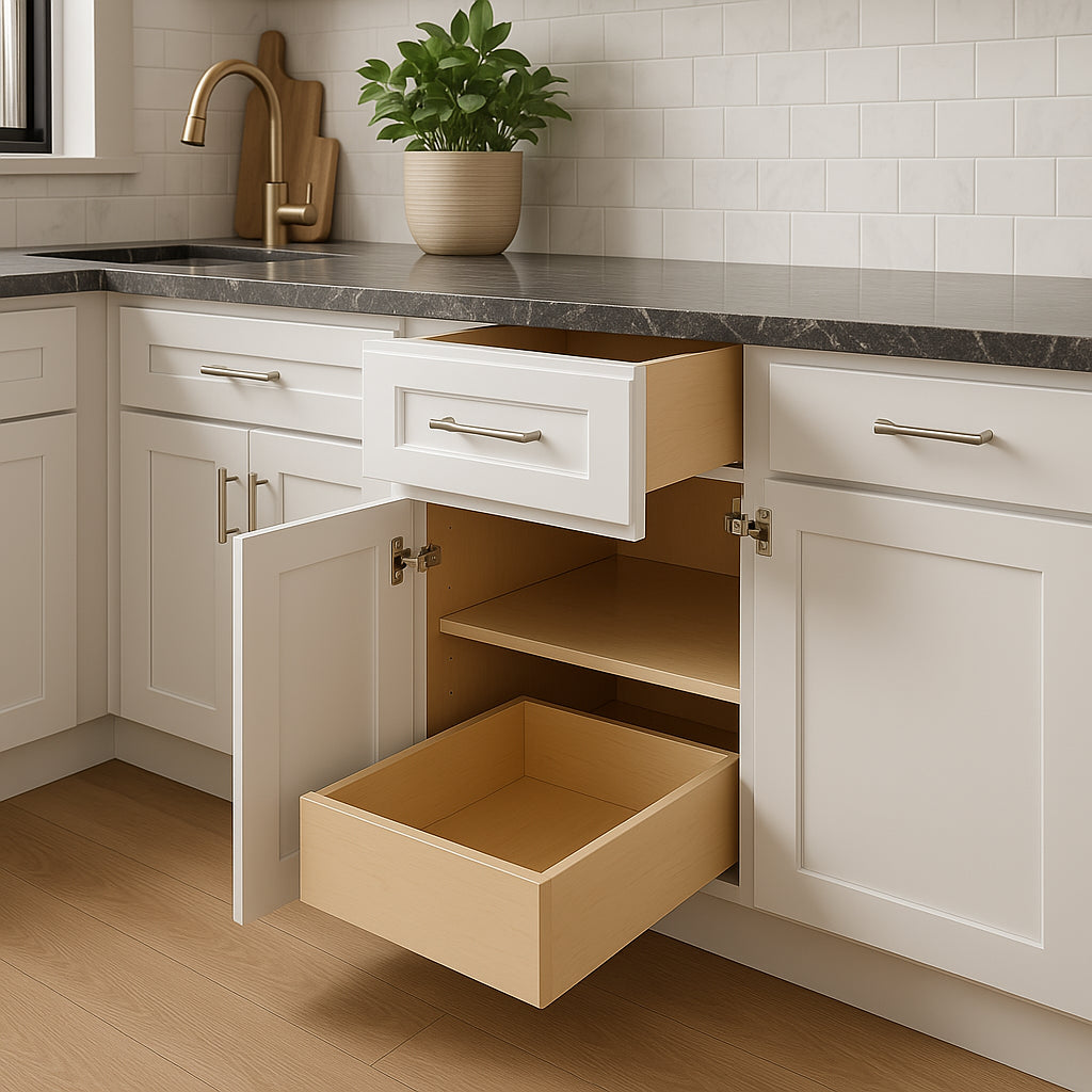 | Kitchen Cabinet Features | Adjustable Shelves, Finished Interior, Full Depth Shelves, Moisture Resistant, Soft Close Doors, Solid Wood, Structural Toe Kicks Included |