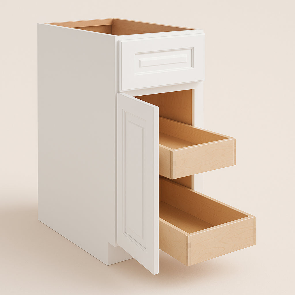 The Grayson Base Kitchen Cabinet is a harmonious blend of modern design and practical functionality. Its Pacific White finish radiates a sense of purity and sophistication, making it a perfect addition to any kitchen. The soft-close technology ensures a seamless and quiet experience, while the adjustable shelves and roll-out trays provide versatile storage solutions. Pair it with stainless steel appliances for a sleek, contemporary look that embodies luxury and efficiency.
