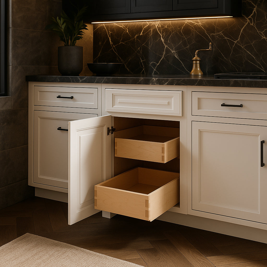 - Soft-Close Technology: Includes soft-close drawers and doors for quiet and effortless usability.