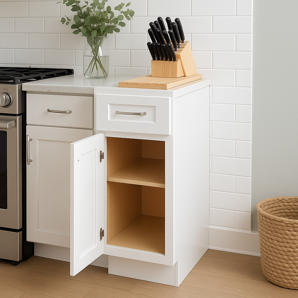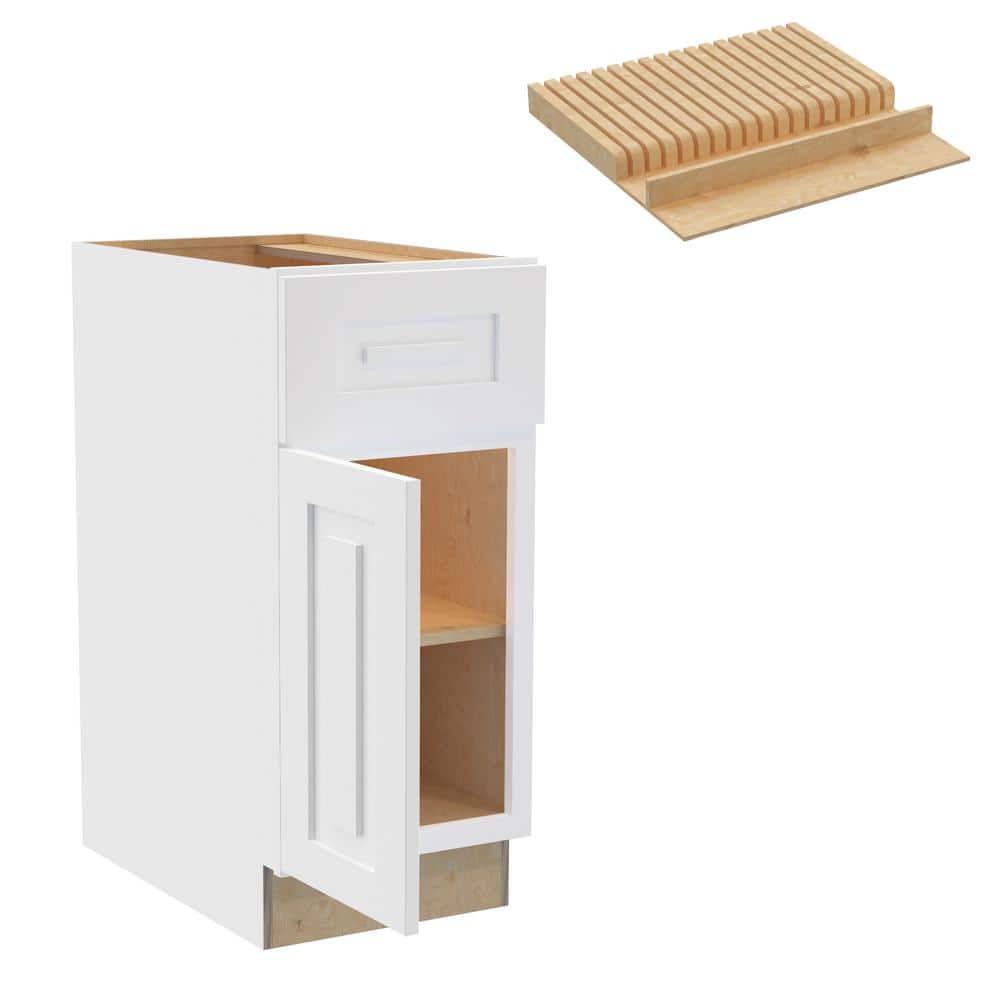 Home Decorators Collection Grayson 15 in. W x 24 in. D x 34.5 in. H Assembled Plywood Base Kitchen Cabinet in Pacific White with Knife Block LH