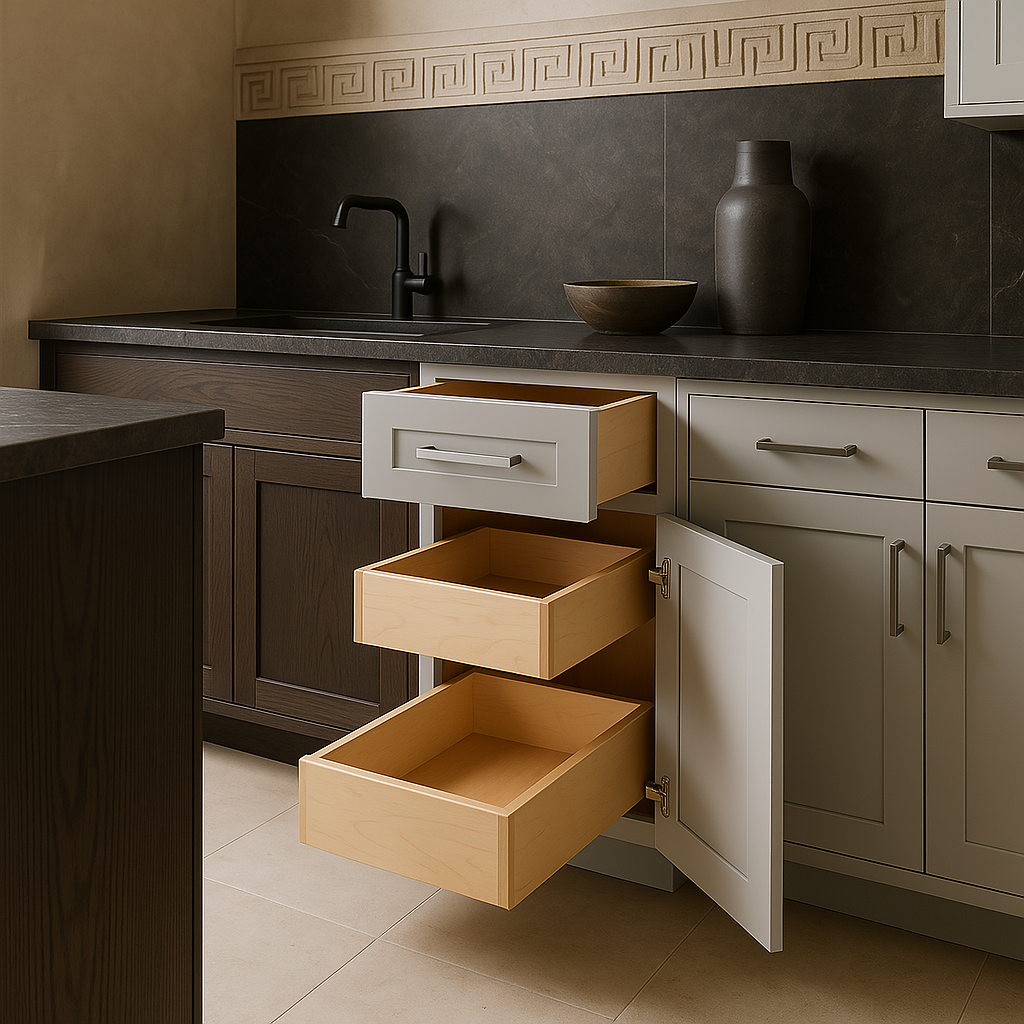 • Soft-Close Technology: Features soft-close doors and drawers for a quiet and smooth operation.