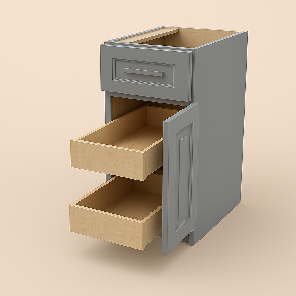 The Grayson Pearl Gray Kitchen Cabinet combines durable plywood construction with a sleek Shaker design, offering both style and practicality. Its soft-close features and rollout trays enhance functionality, making it a perfect addition to modern and transitional kitchens.