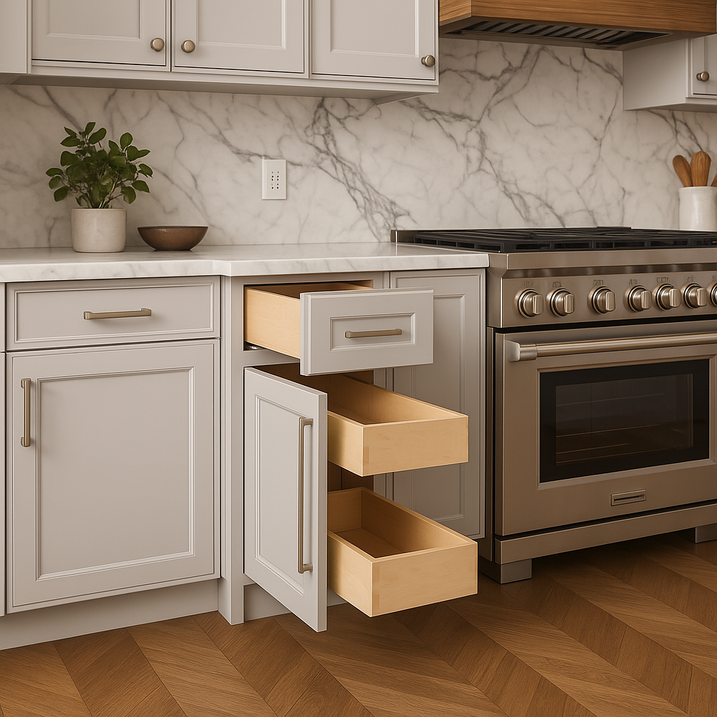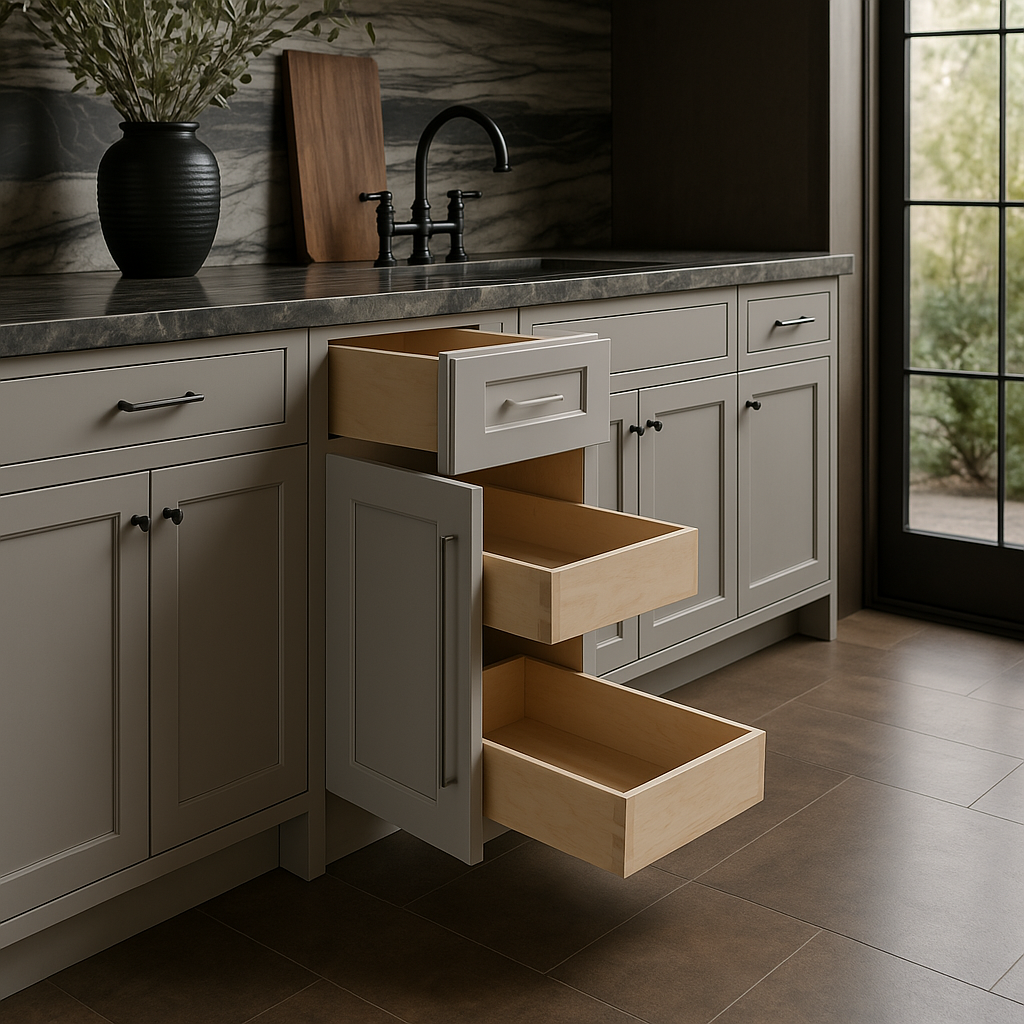 • Soft-Close Mechanism: Includes soft-close doors and drawers for quiet and seamless operation.