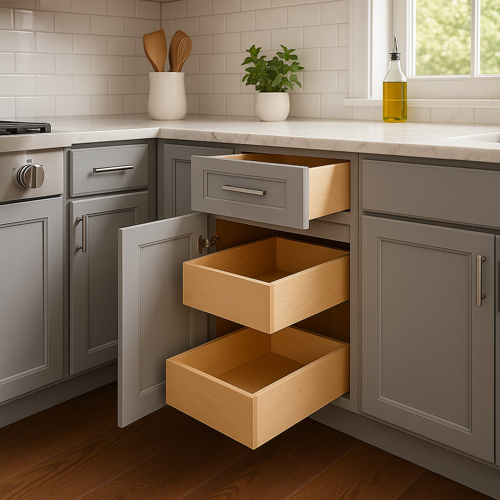 - Soft Close Features: Equipped with soft close doors and roll-out trays for smooth and quiet operation.